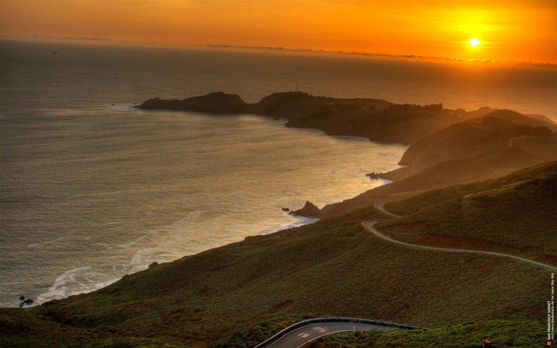 Tramonto sul mare con vista sulle montagne e nuvoleTramonto sul mare con vista sulle montagne e nuvole