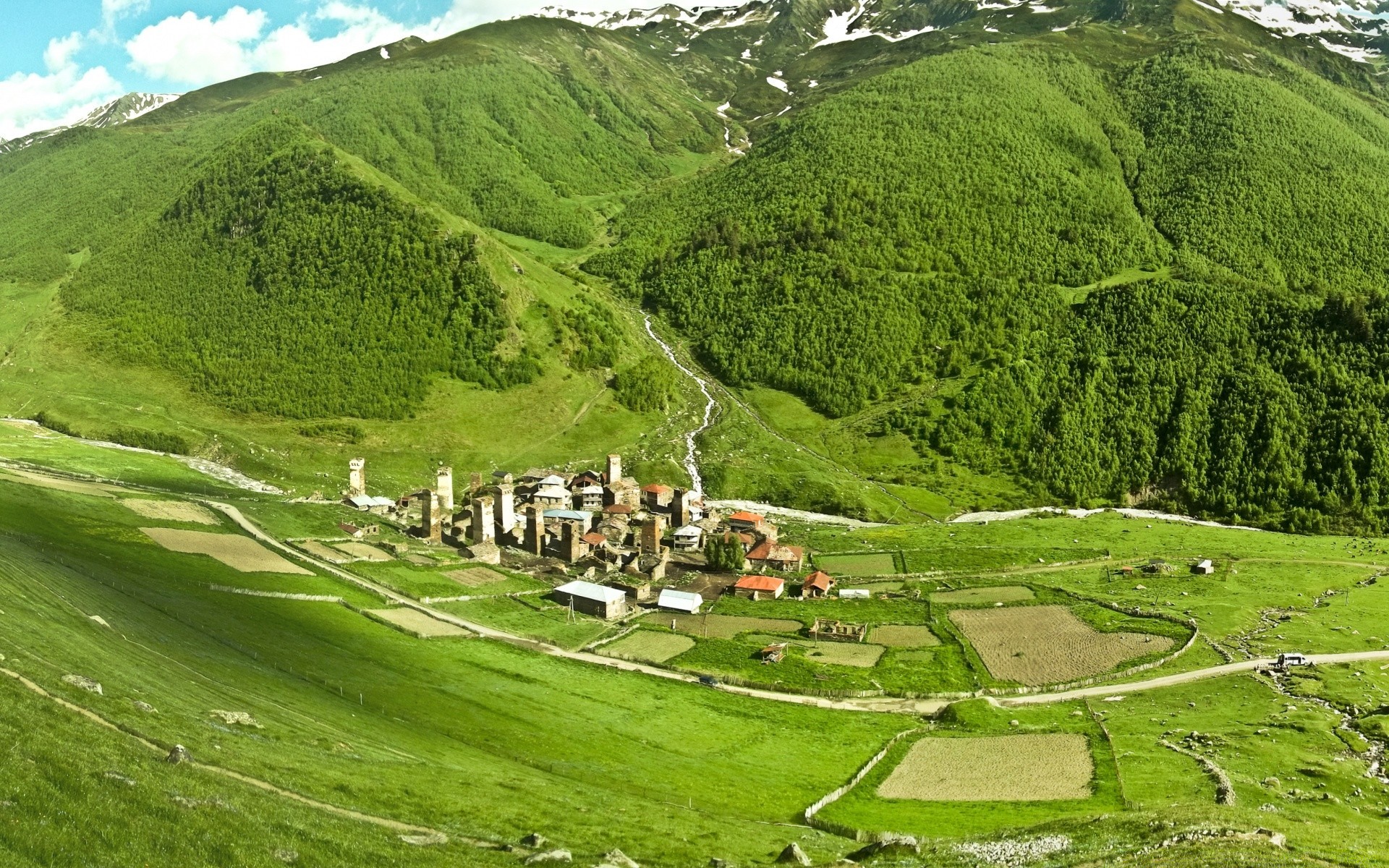 Ai piedi delle montagne c'è una foresta di abeti rossiAi piedi delle montagne c'è una foresta di abeti rossi