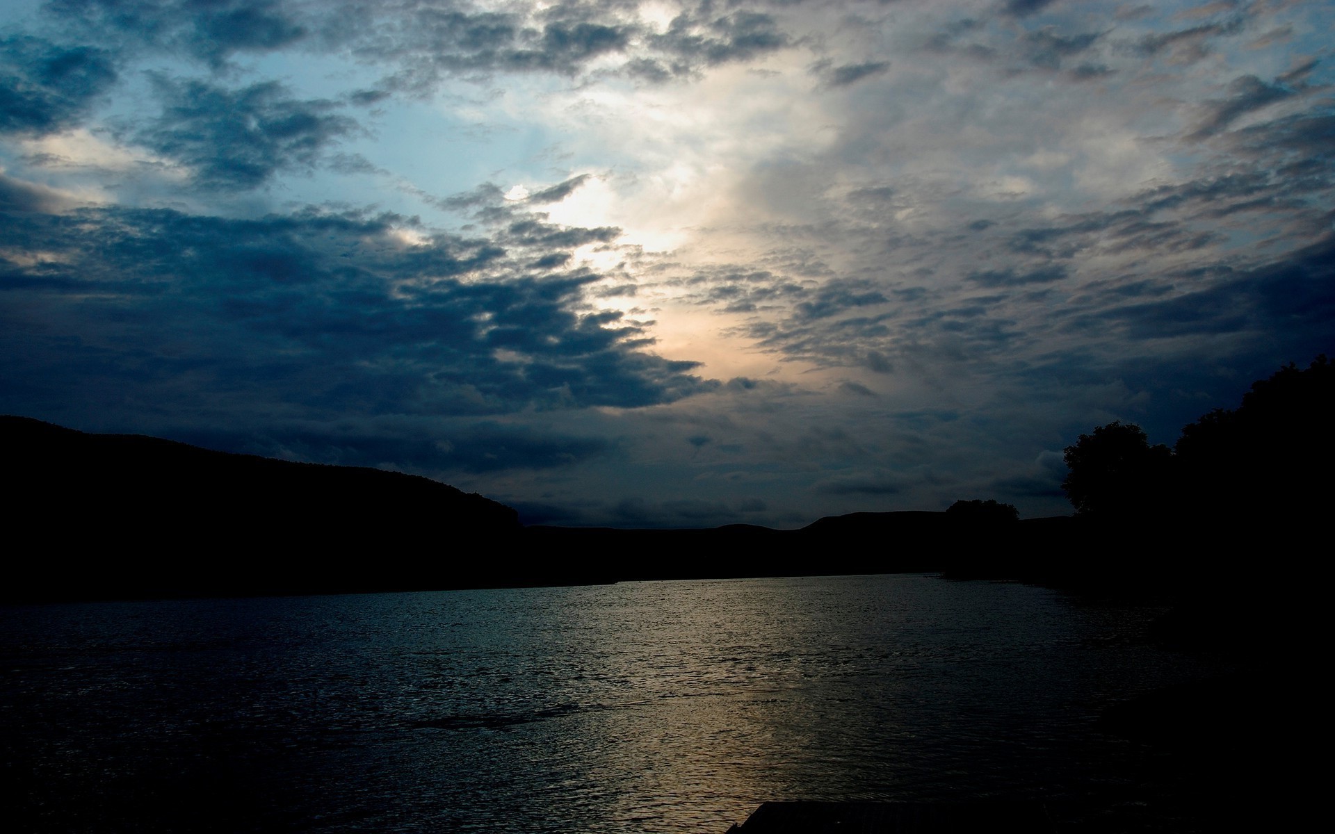 Paesaggio autunnale dello stagno sullo sfondo delle montagne