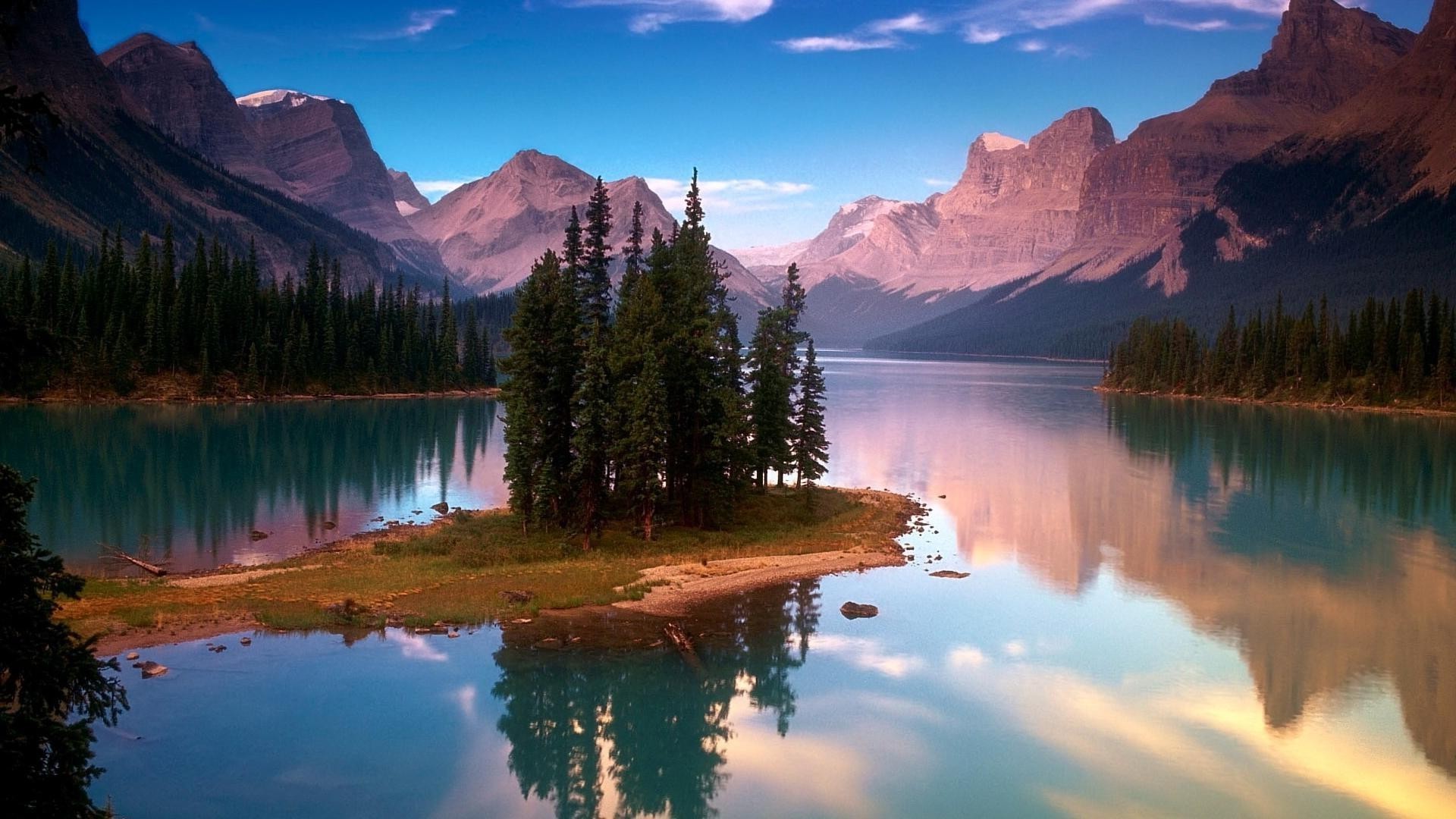 Immagine fantastica: foresta, montagne e pianeta sopra di loro