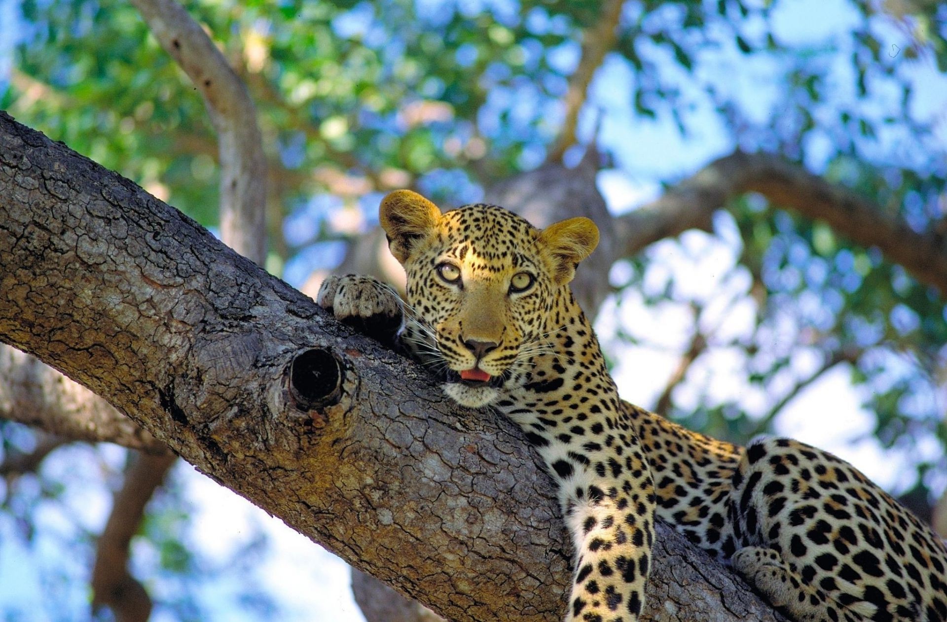 Leopardo che riposa su un albero. Fauna selvatica