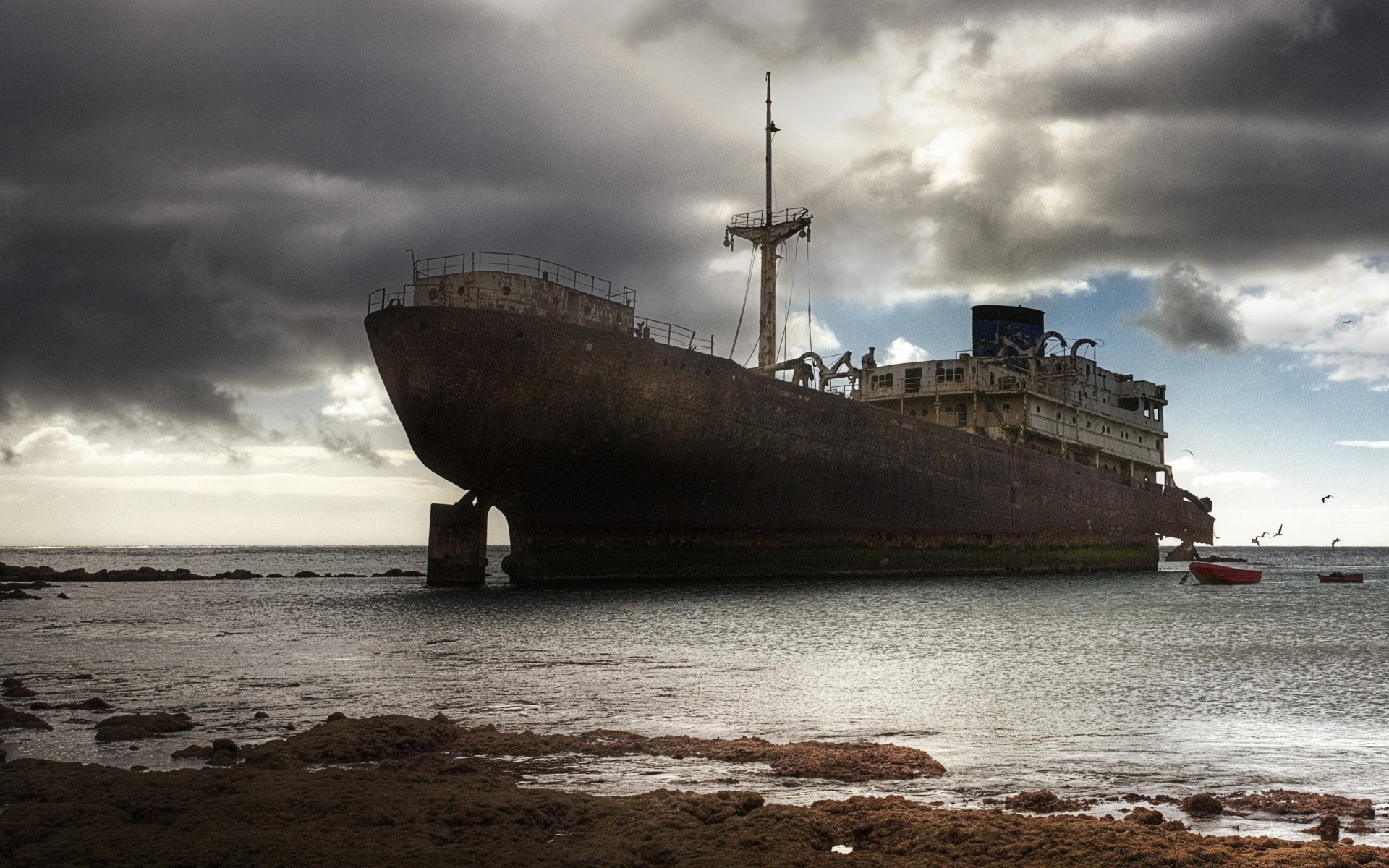 Immagine cupa e scura di una barca sull'acqua prima del viaggio