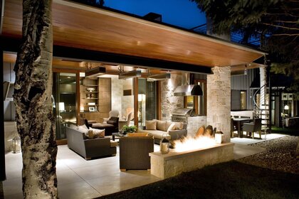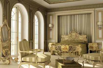 L'interno di una camera da letto moderna con il vantaggio del verde