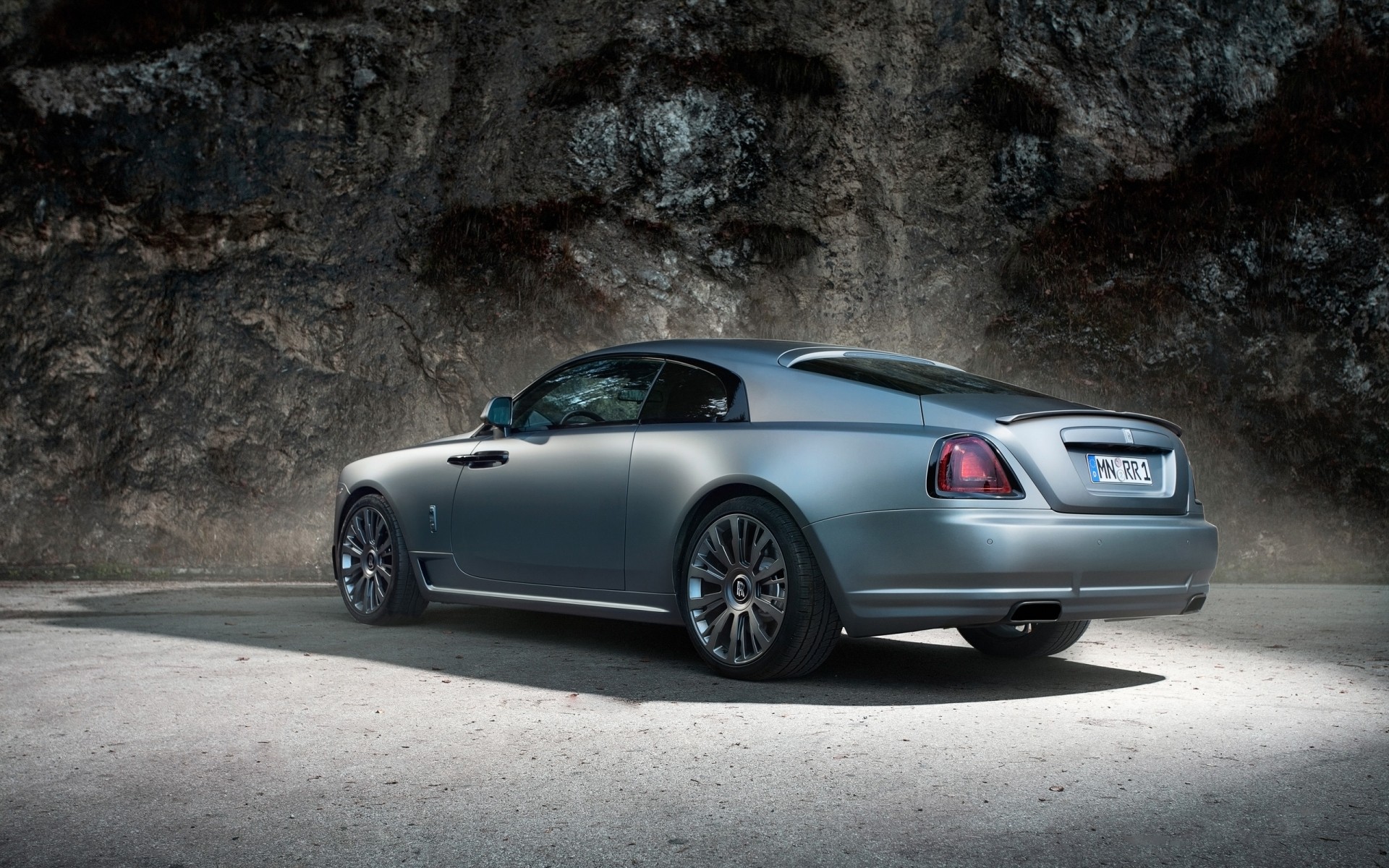 Un'auto rolls royce color grafite si trova sul marciapiede