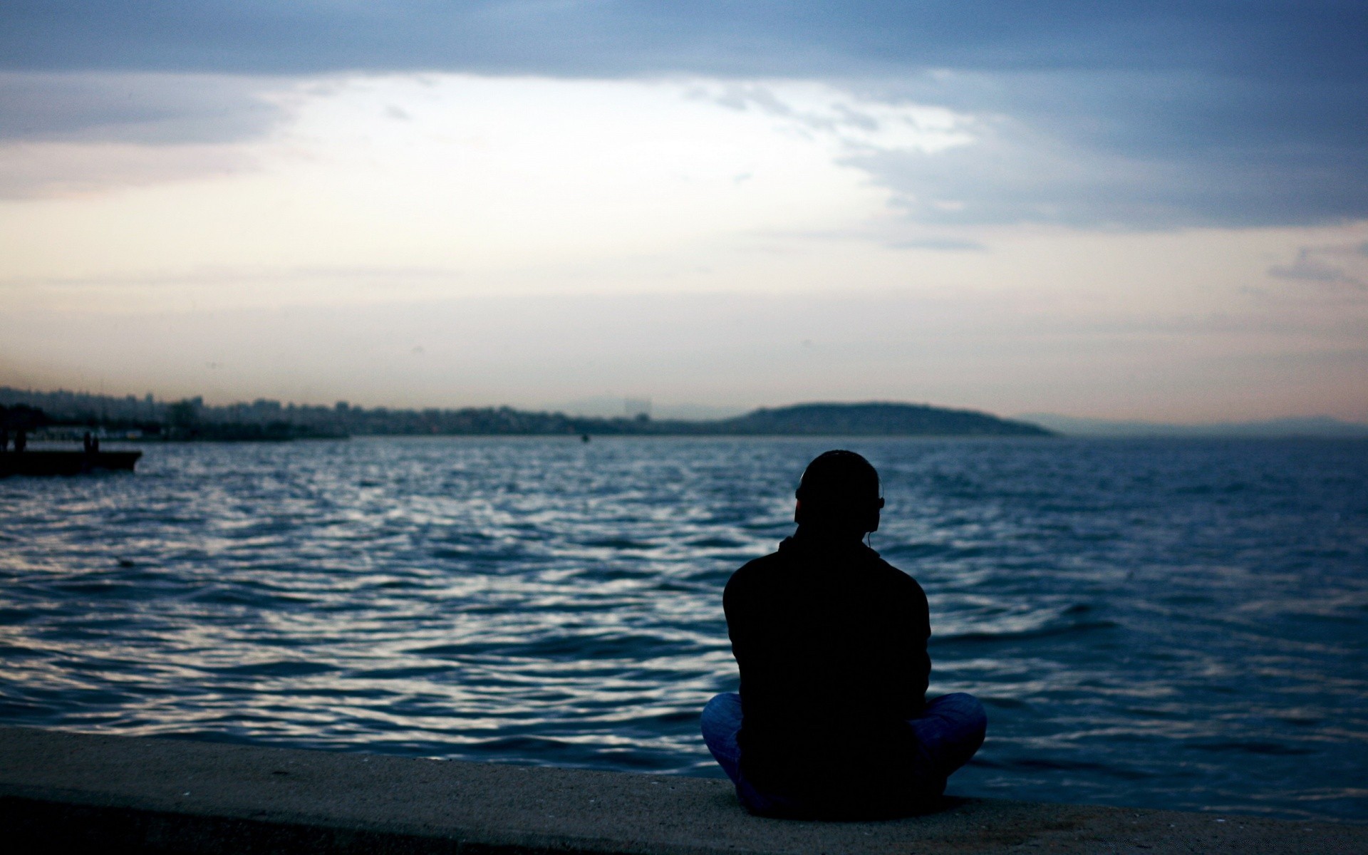 Uomo solitario che guarda il mare