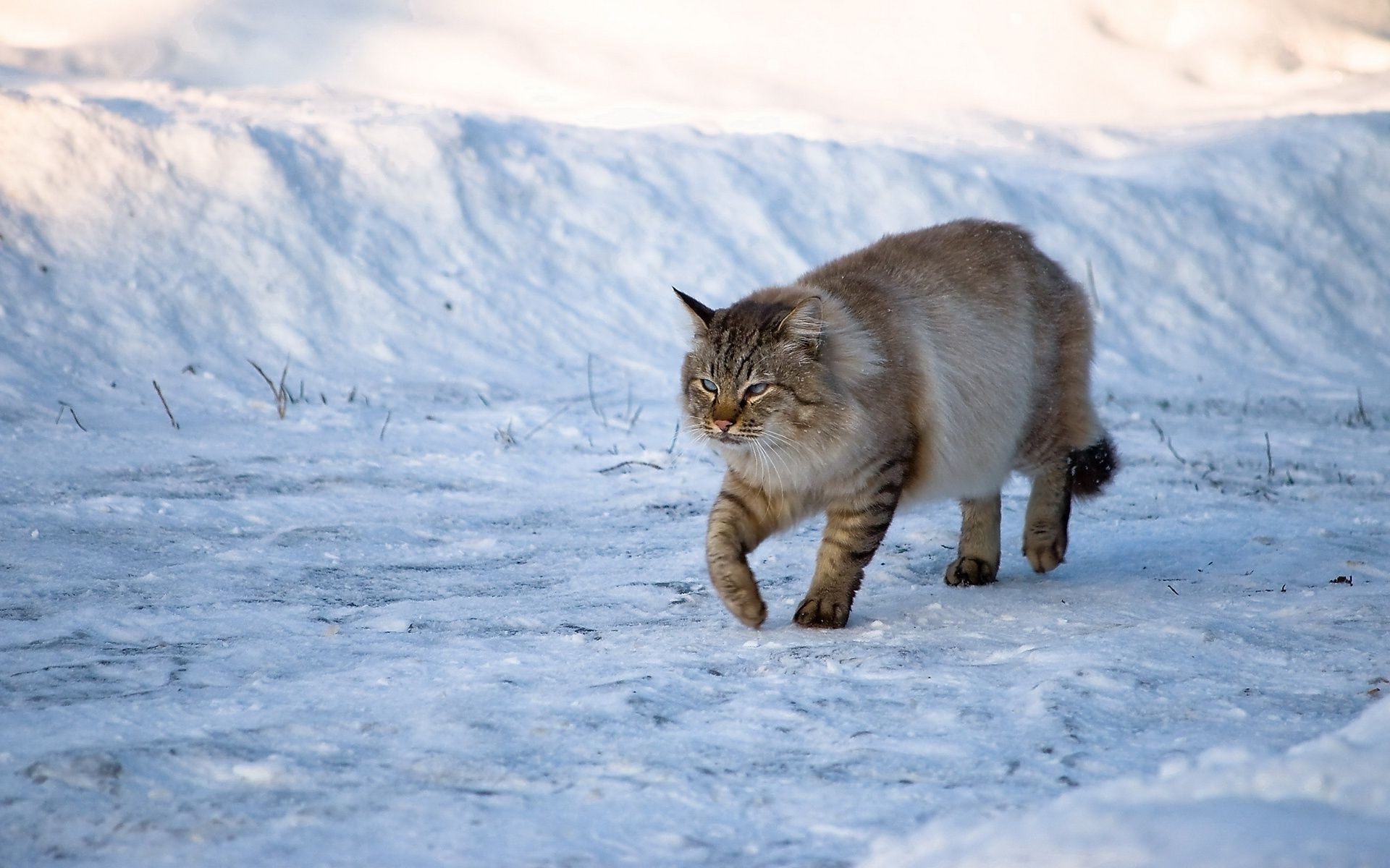 Gatto dai Capelli rossi con colletto e occhiali sulla strada