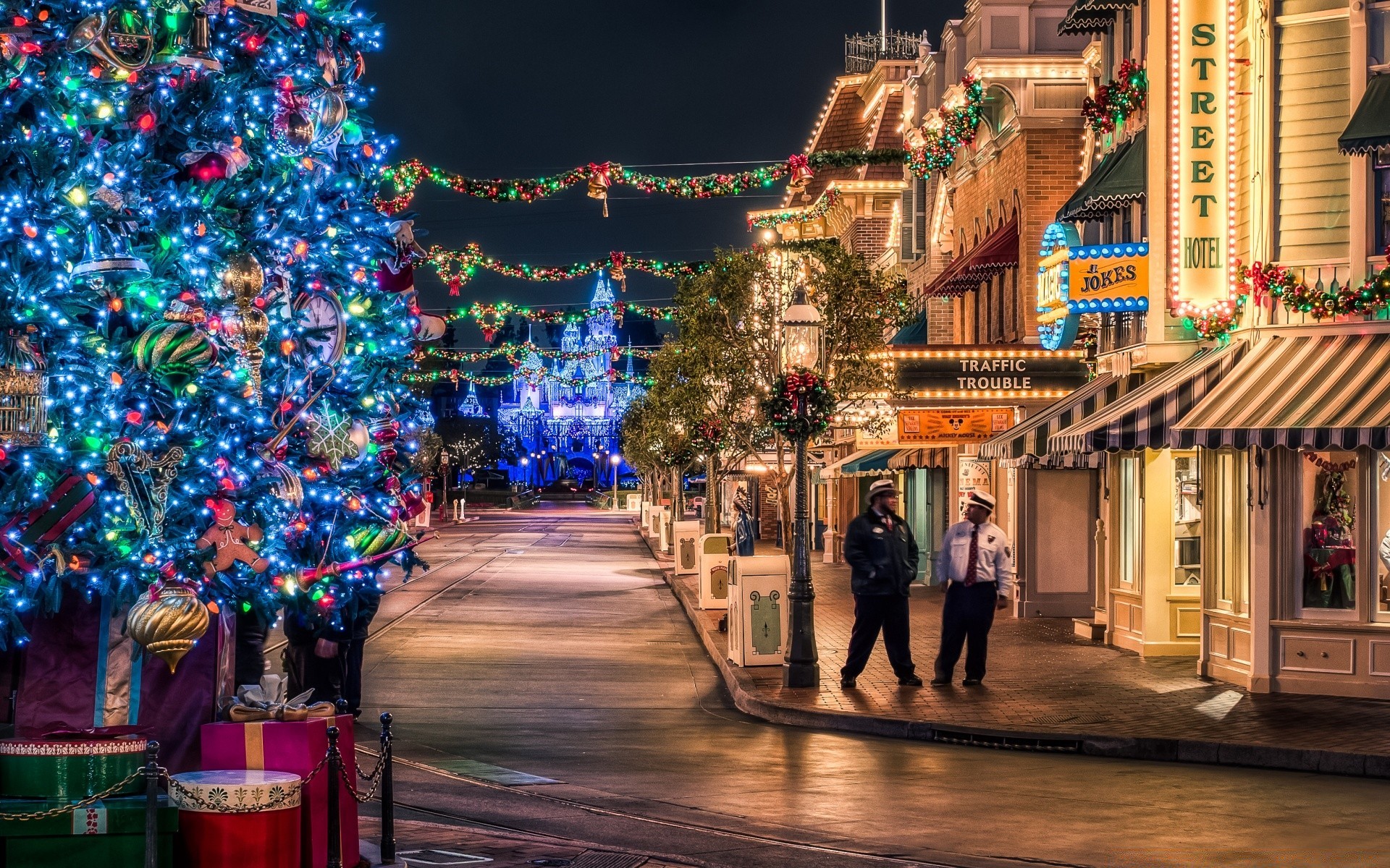Palline colorate di Natale su foglie verdi tra linee colorate