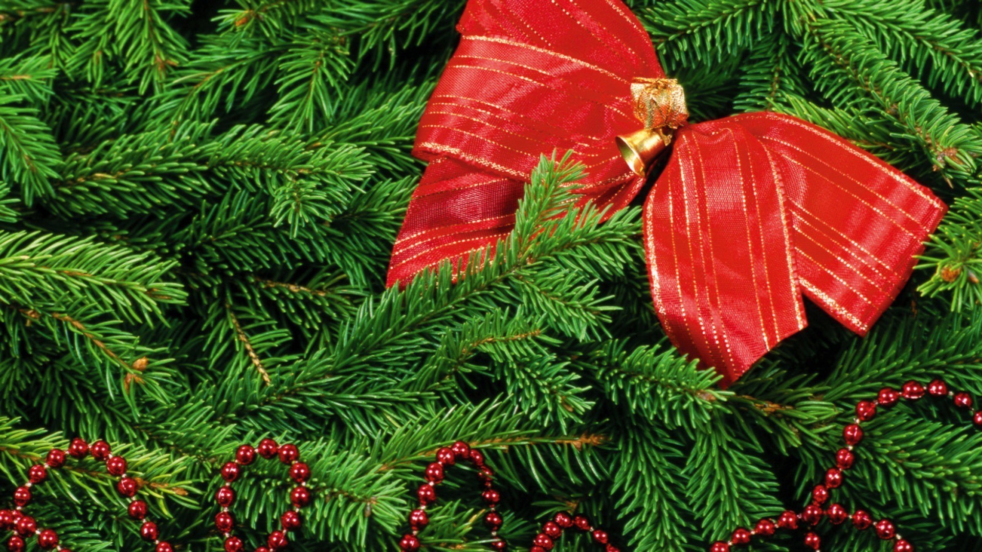 Palle di Natale in un cestino su uno sfondo di rami di abete