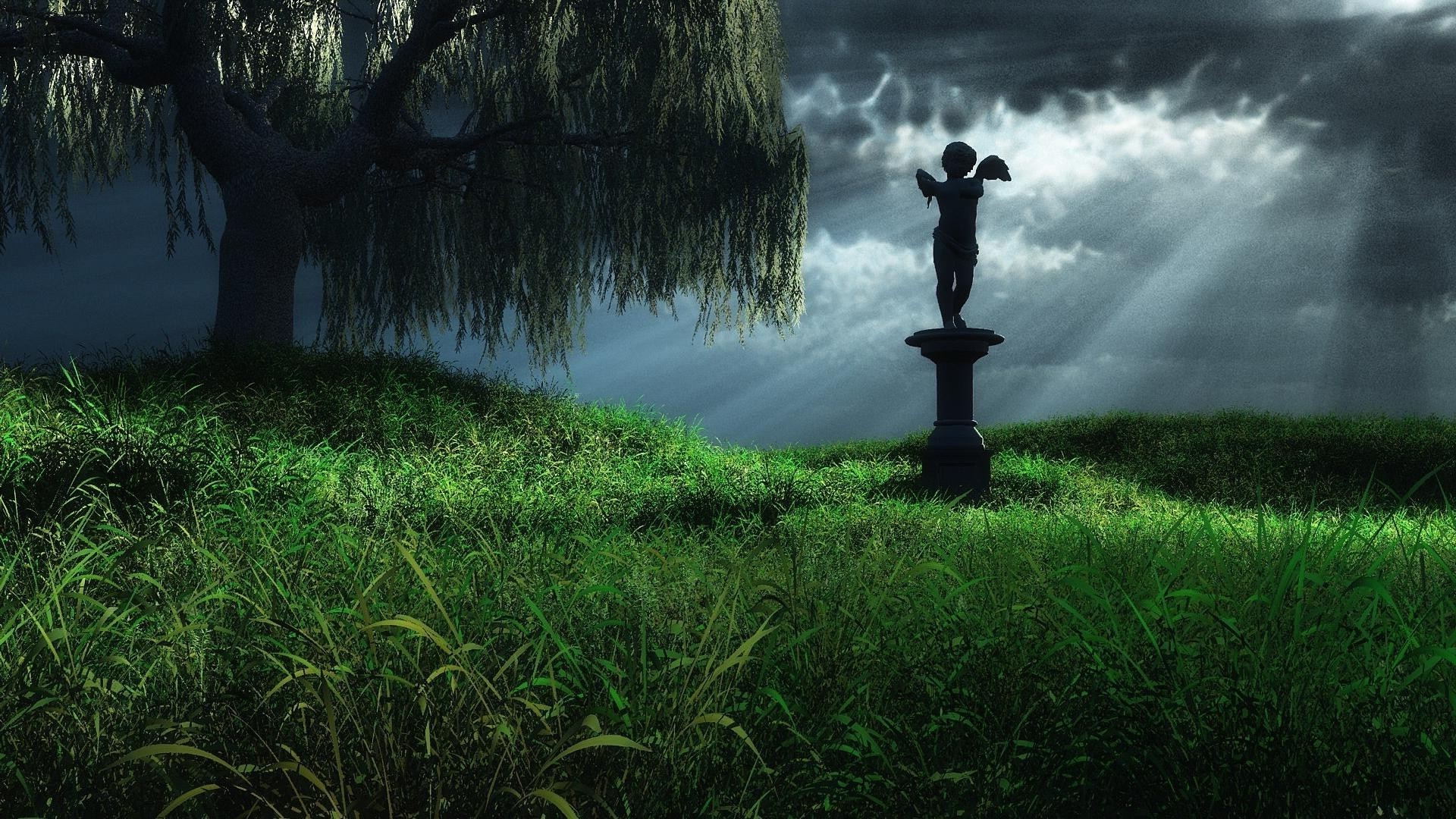 Natura e Statua nei raggi di luce