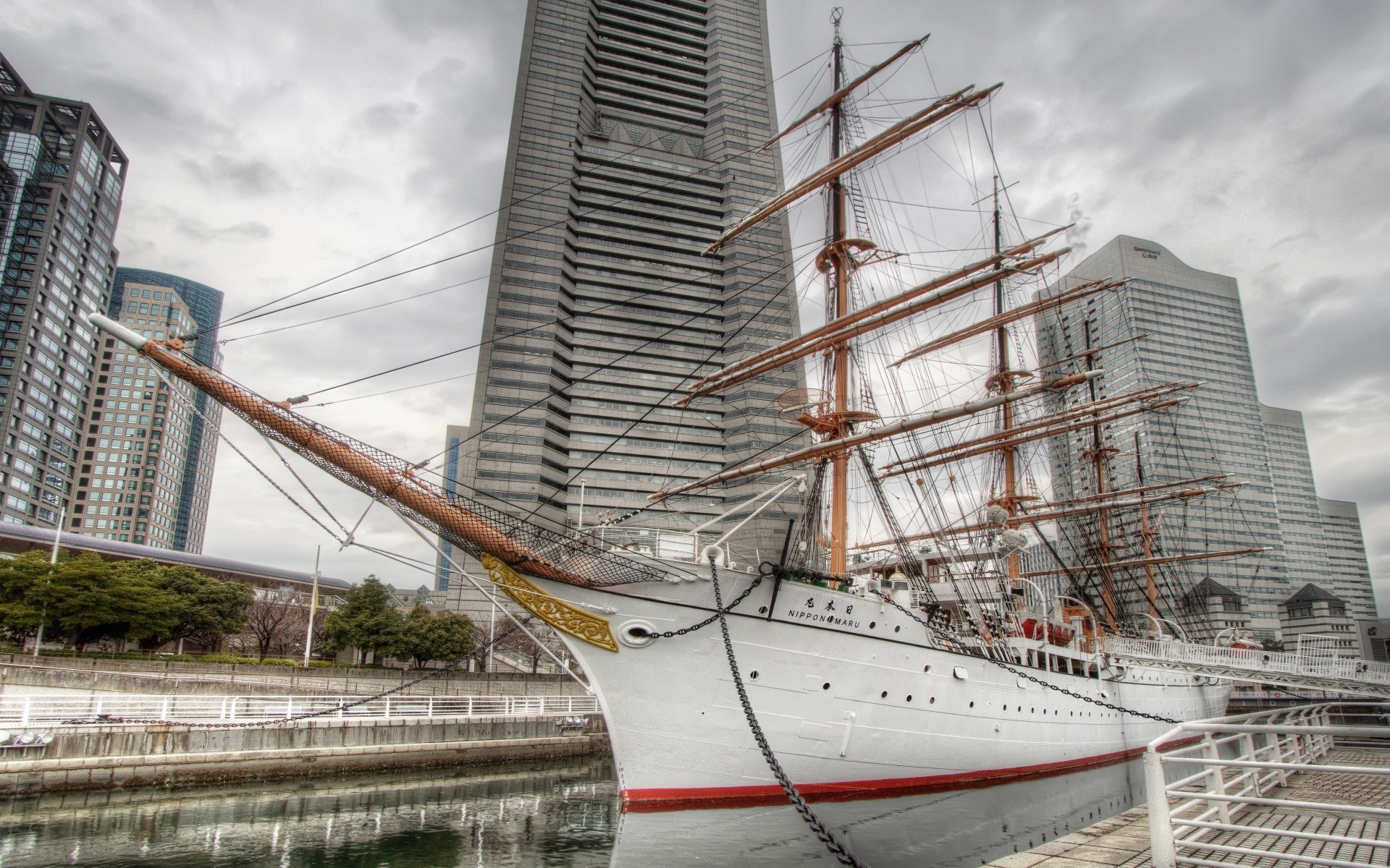Bella nave che galleggia sull'acqua