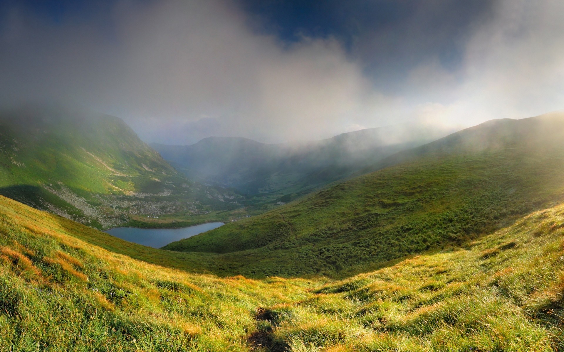 Castello nella nebbia. Un'isola nella nebbia. Paesaggio fiabesco
