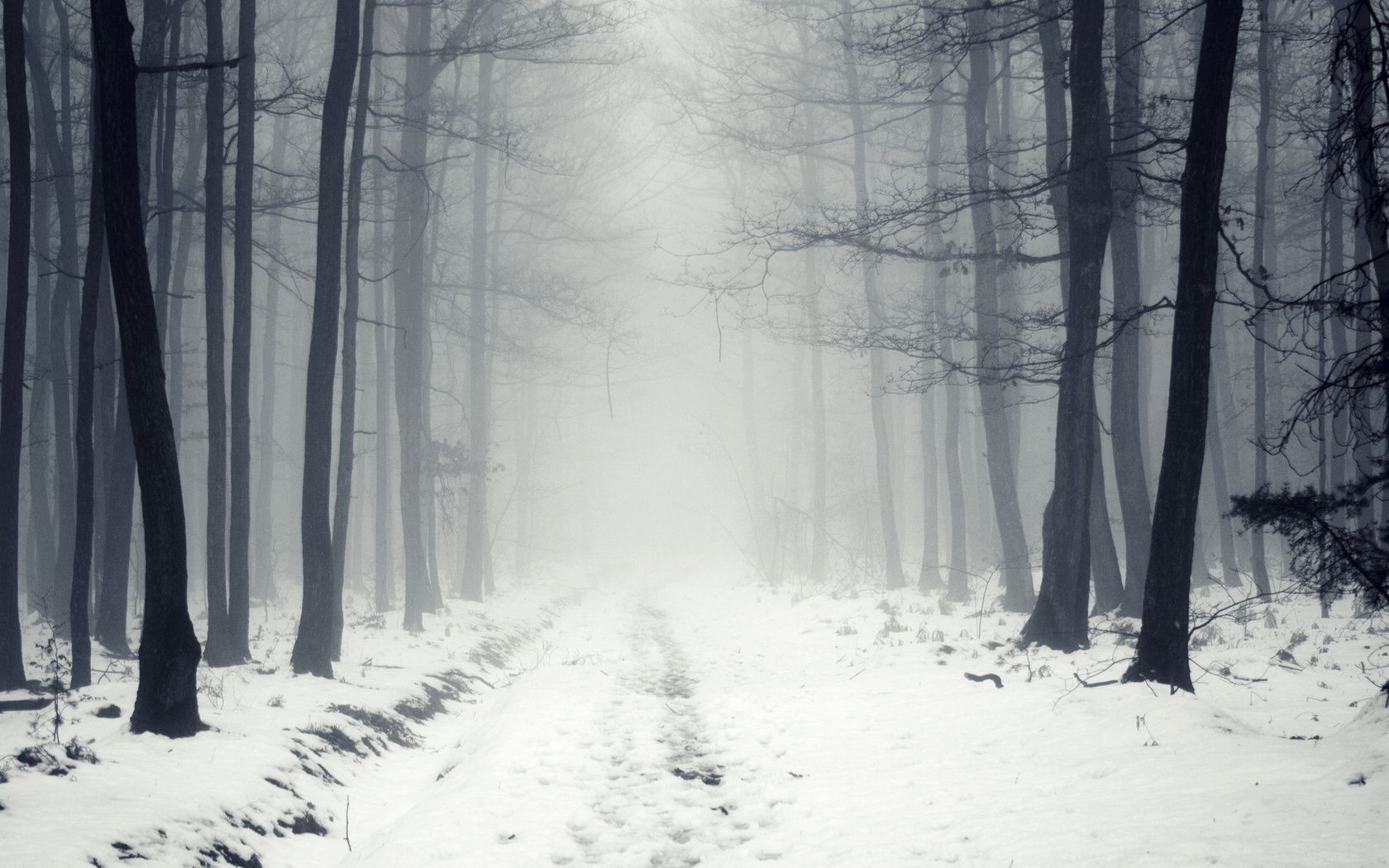Albero solitario nella nebbia, classico in bianco e nero Opzione