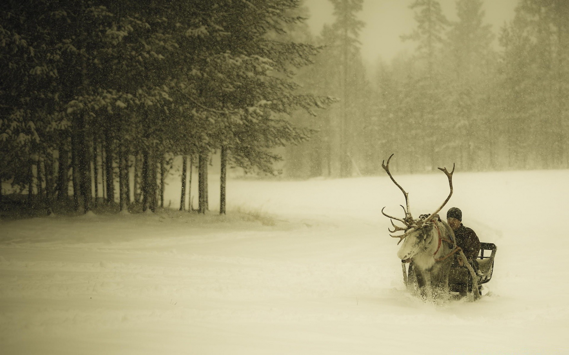 Imbracatura di cervo nella foresta invernale