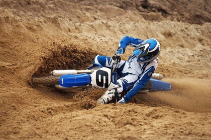 Il motociclista cade con la moto nella sabbia