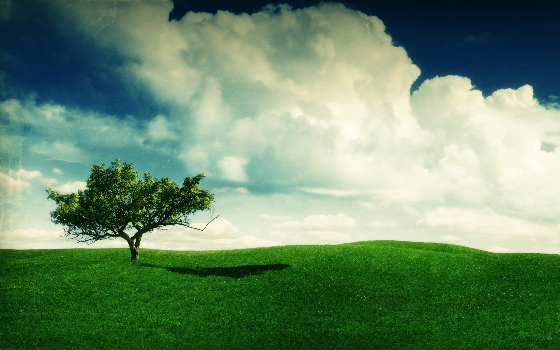 Paesaggio con erba verde e albero