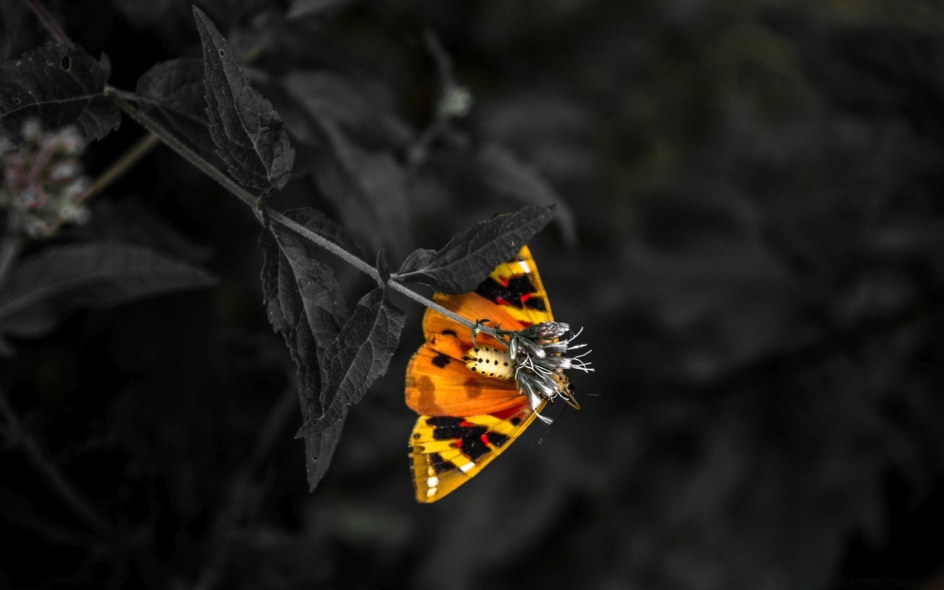 Foto in bianco e nero di un fiore delicato su uno sfondo sfocato