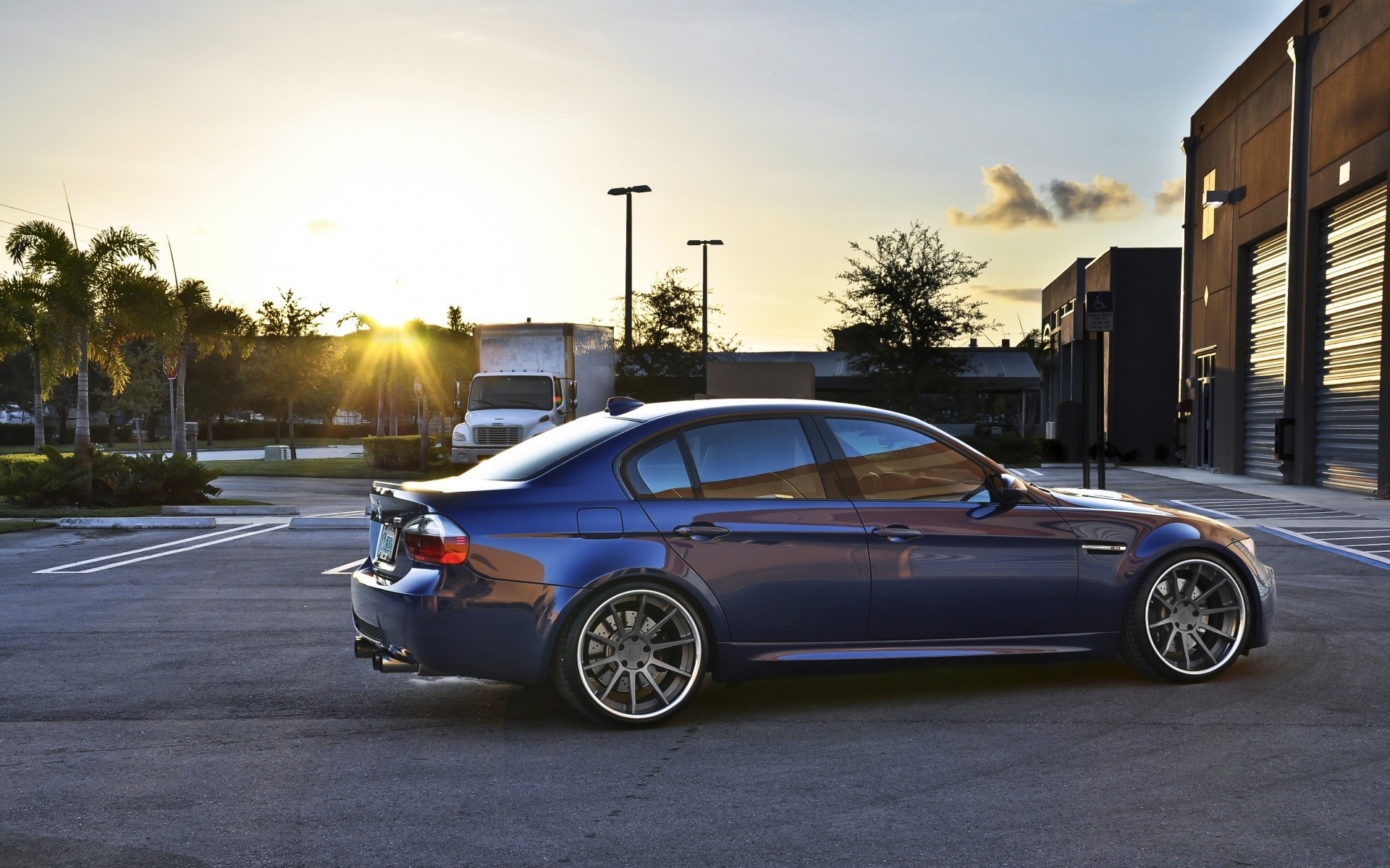 Auto sportiva blu all'alba
