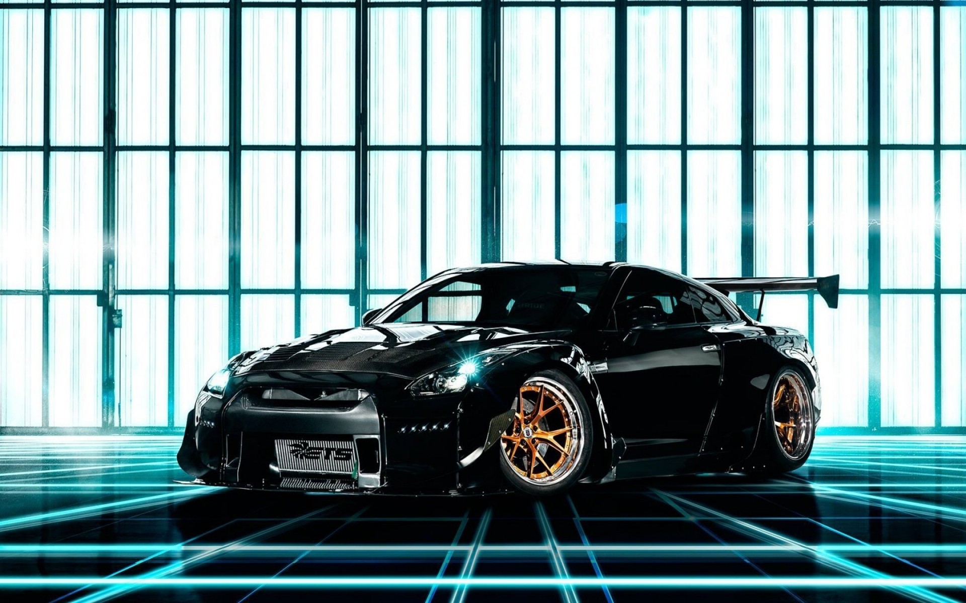 Nissan bianca sulla strada accanto alla lastra di cemento