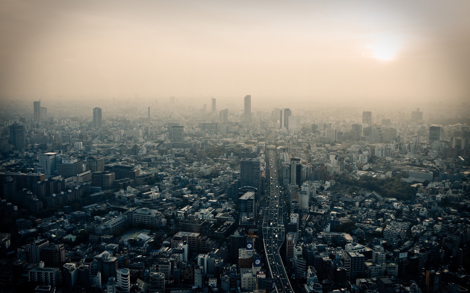 Nebbia sopra l'anno e grattacieli
