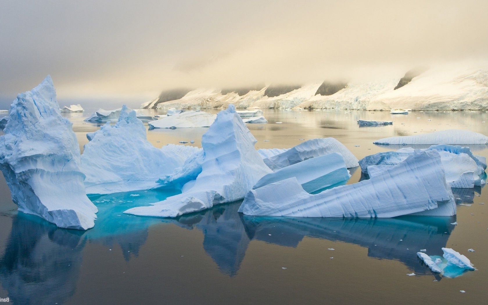 Paesaggio di acque fredde con ICEBERG