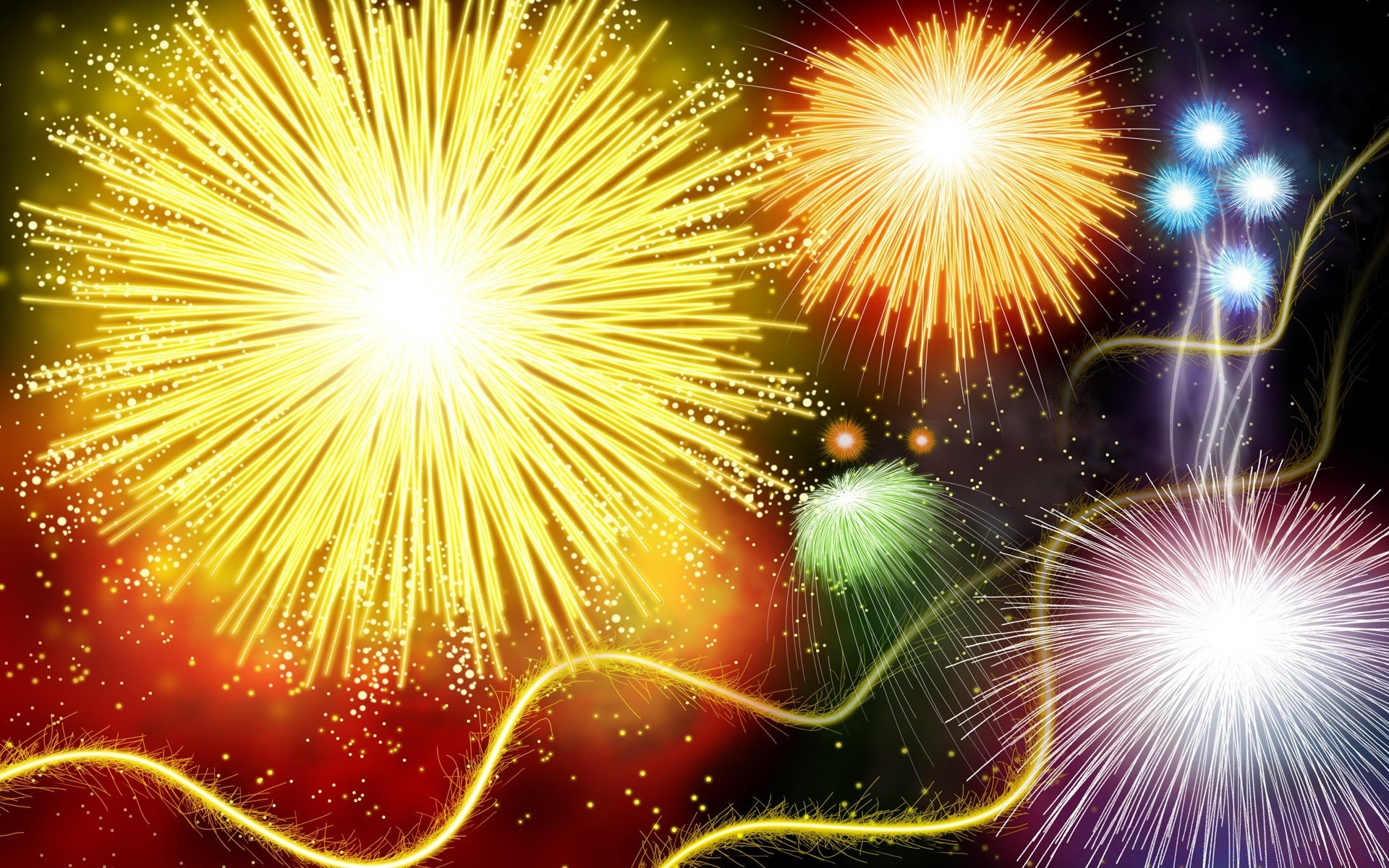 Esplosione di fuochi d artificio luminosi nel cielo