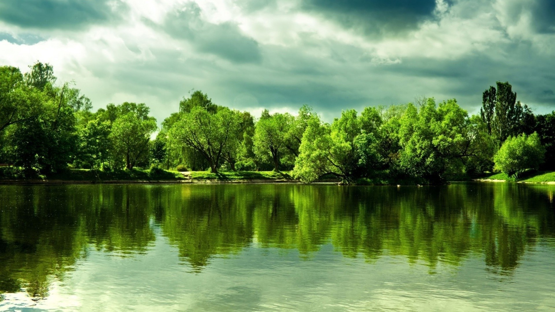 Riflesso della foresta verde nell'acqua stagnante dello stagno