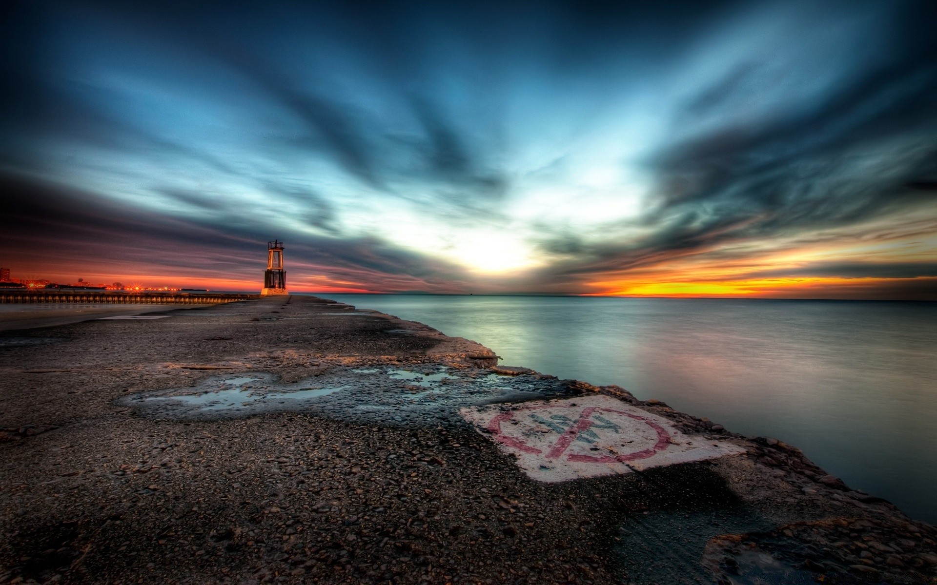 Tramonto dipinto in Photoshop e fiume