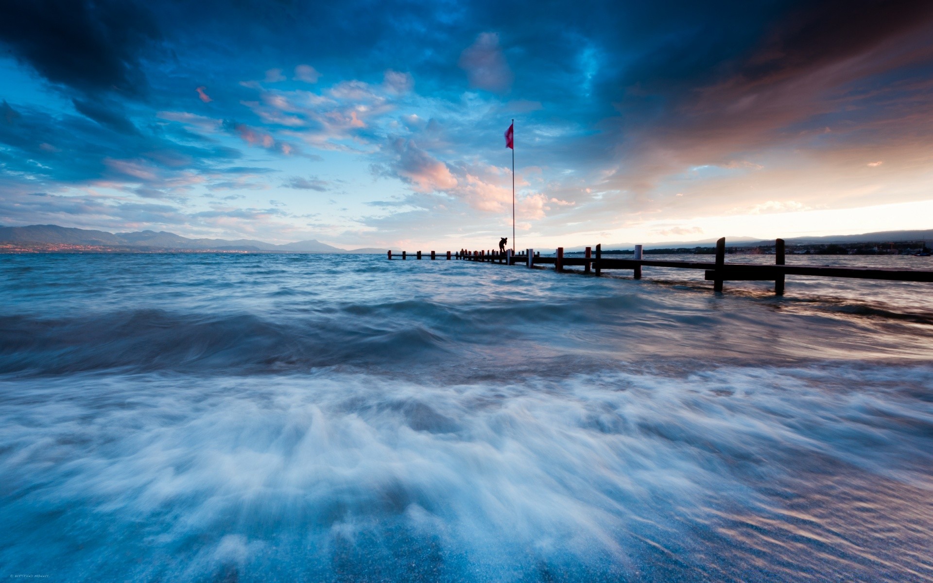 Olinokaya barca sul lago sullo sfondo del tramontoOlinokaya barca sul lago sullo sfondo del tramonto