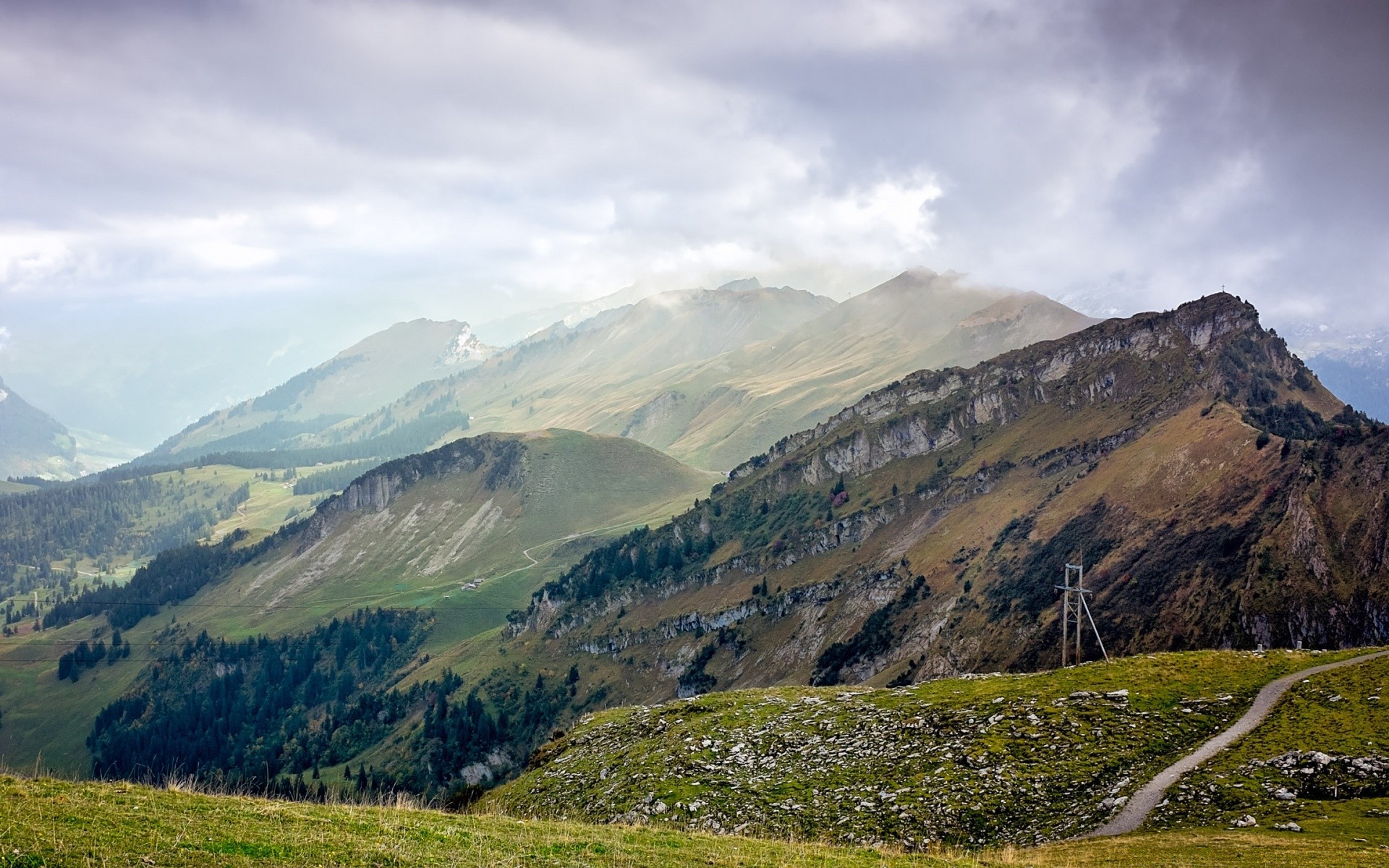 Le montagne sullo sfondo delle nuvole sembrano grandi