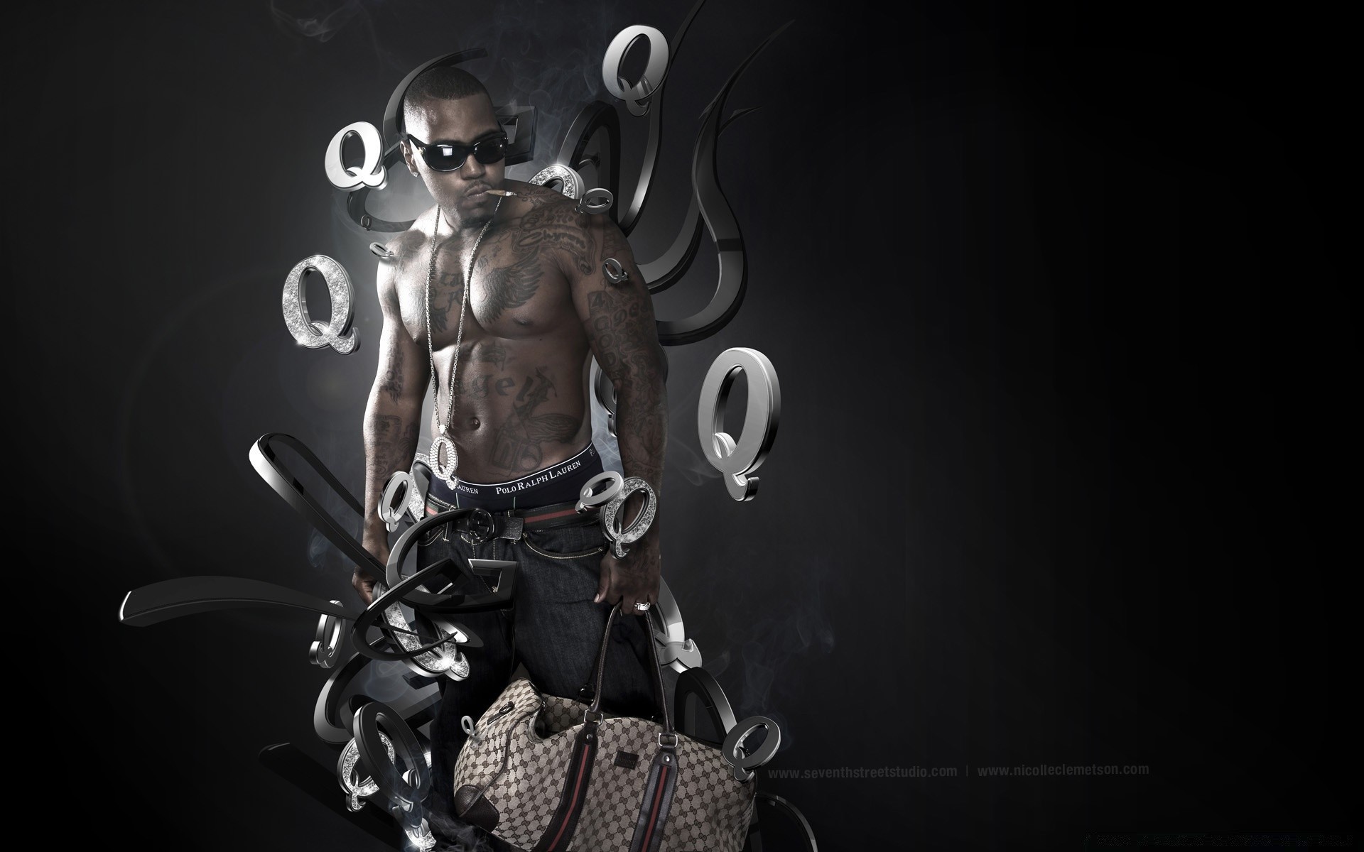 Foto creativa di un uomo di colore con un tatuaggio in occhiali da sole con uno zaino a scacchi