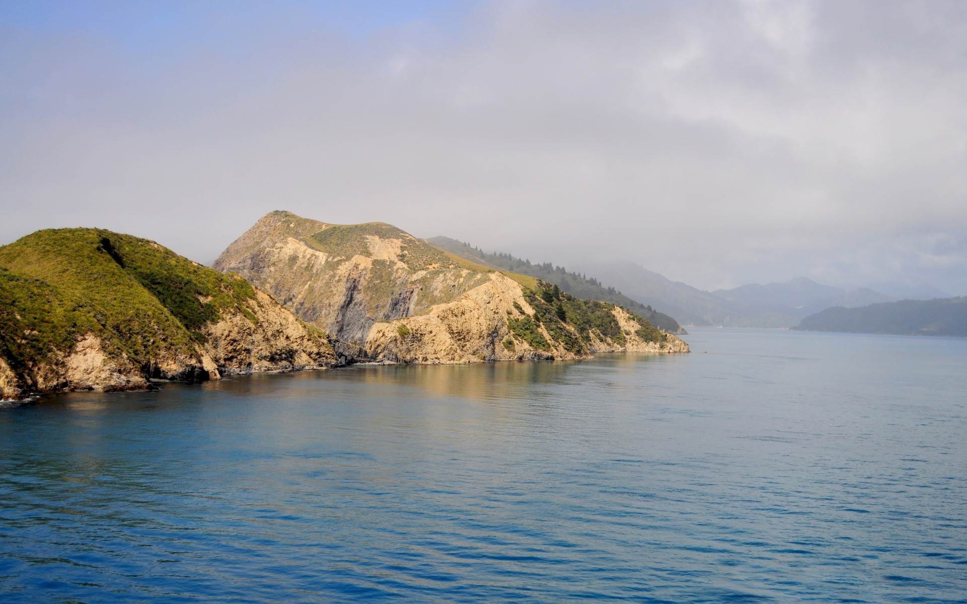 Bella costa rocciosa e foschia di nebbia in lontananza
