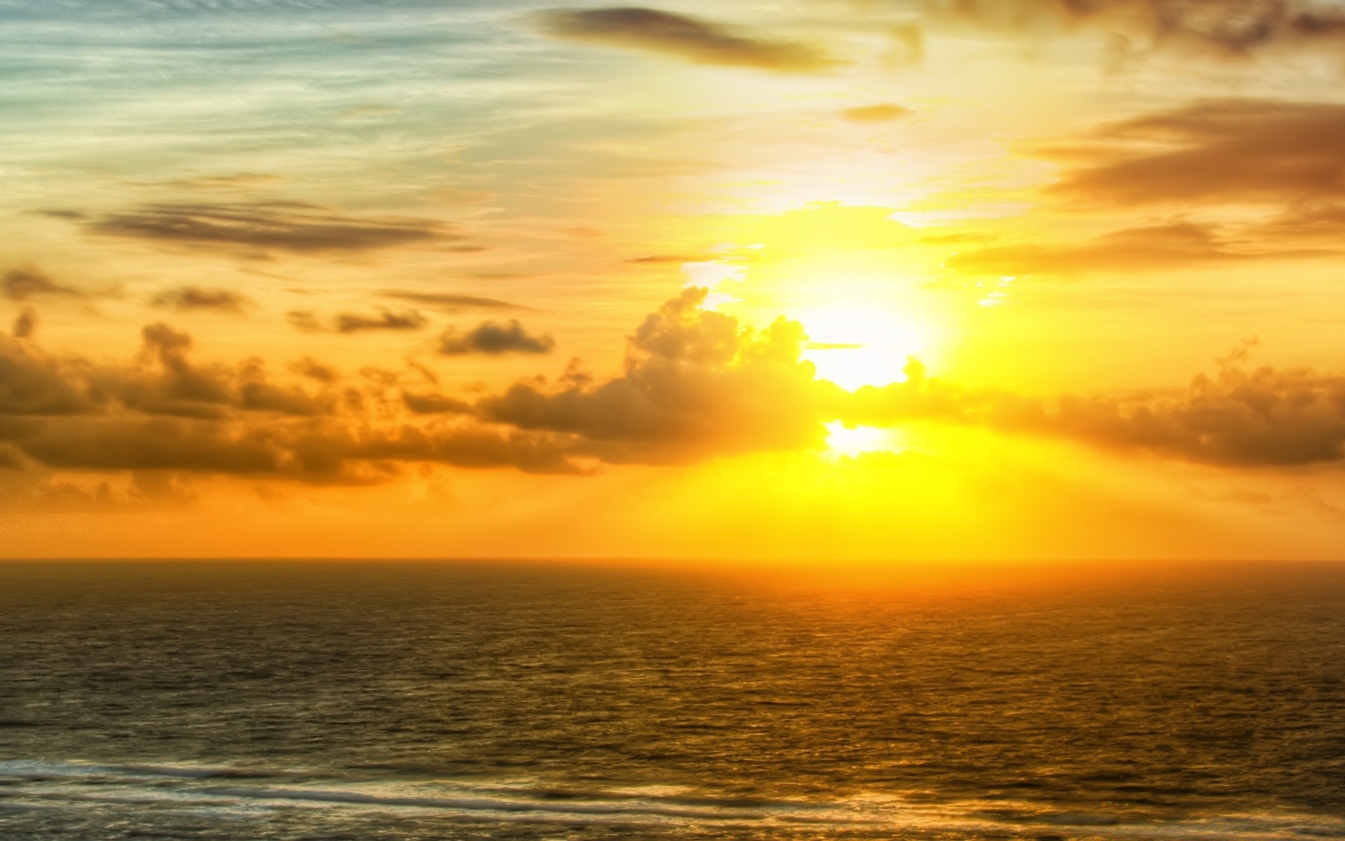 Immagine della marea dell'oceano sullo sfondo del tramonto