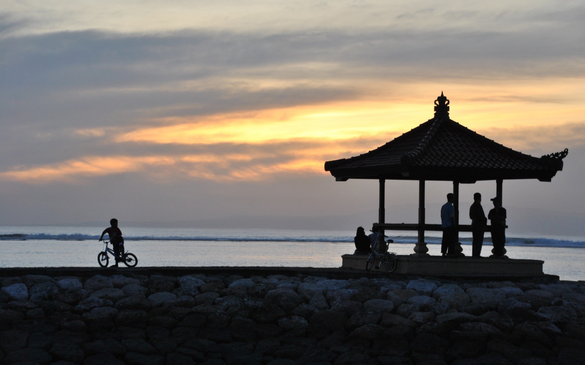 Persone sulla spiaggia vicino all'oceano. Cielo