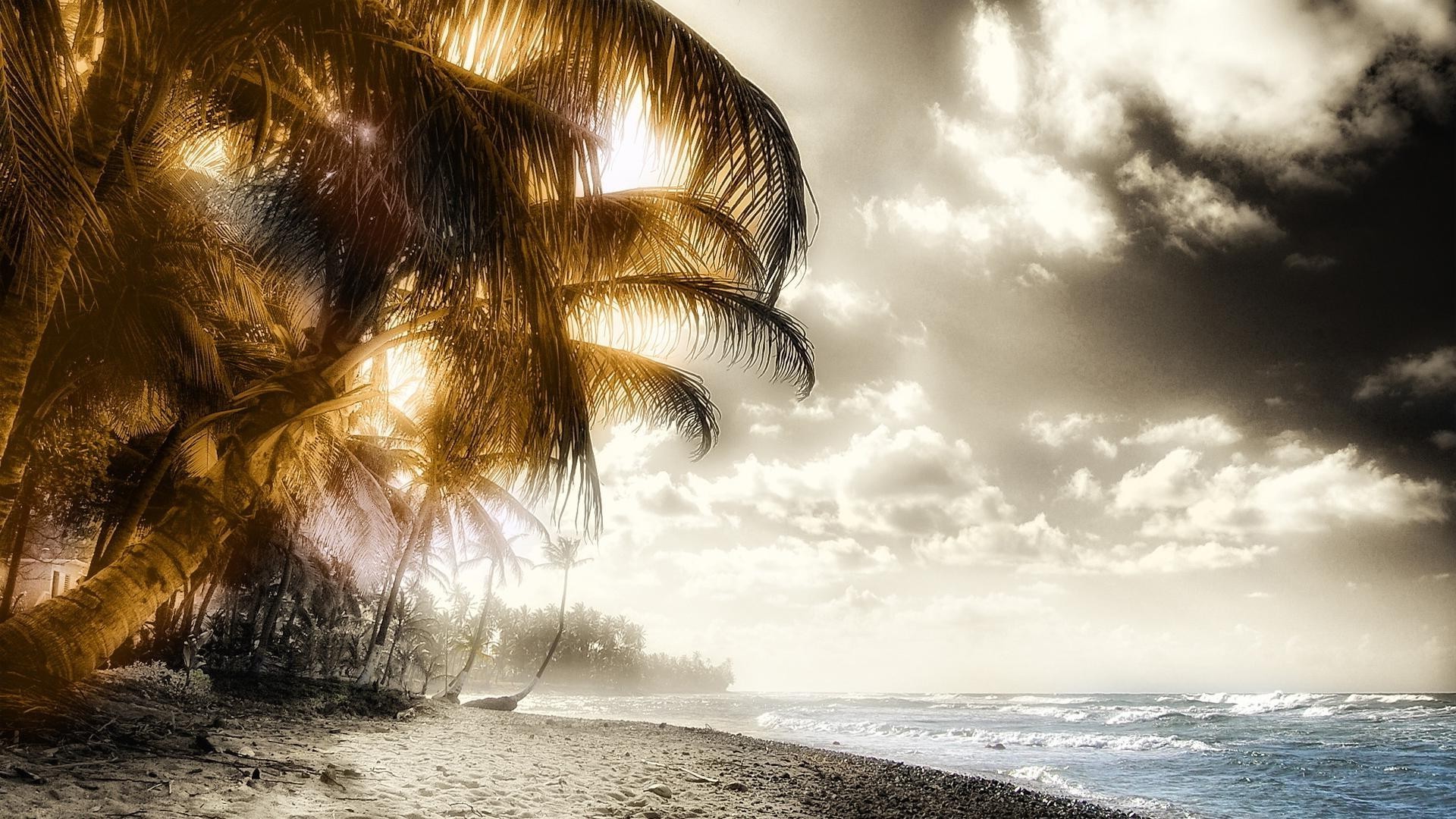 Palme sulla spiaggia vicino all'oceano con le onde