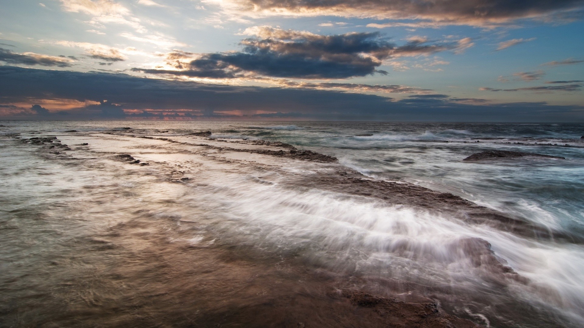 Le onde del mare si infrangono sulla ringhiera scavata sulla spiaggiaLe onde del mare si infrangono sulla ringhiera scavata sulla spiaggia