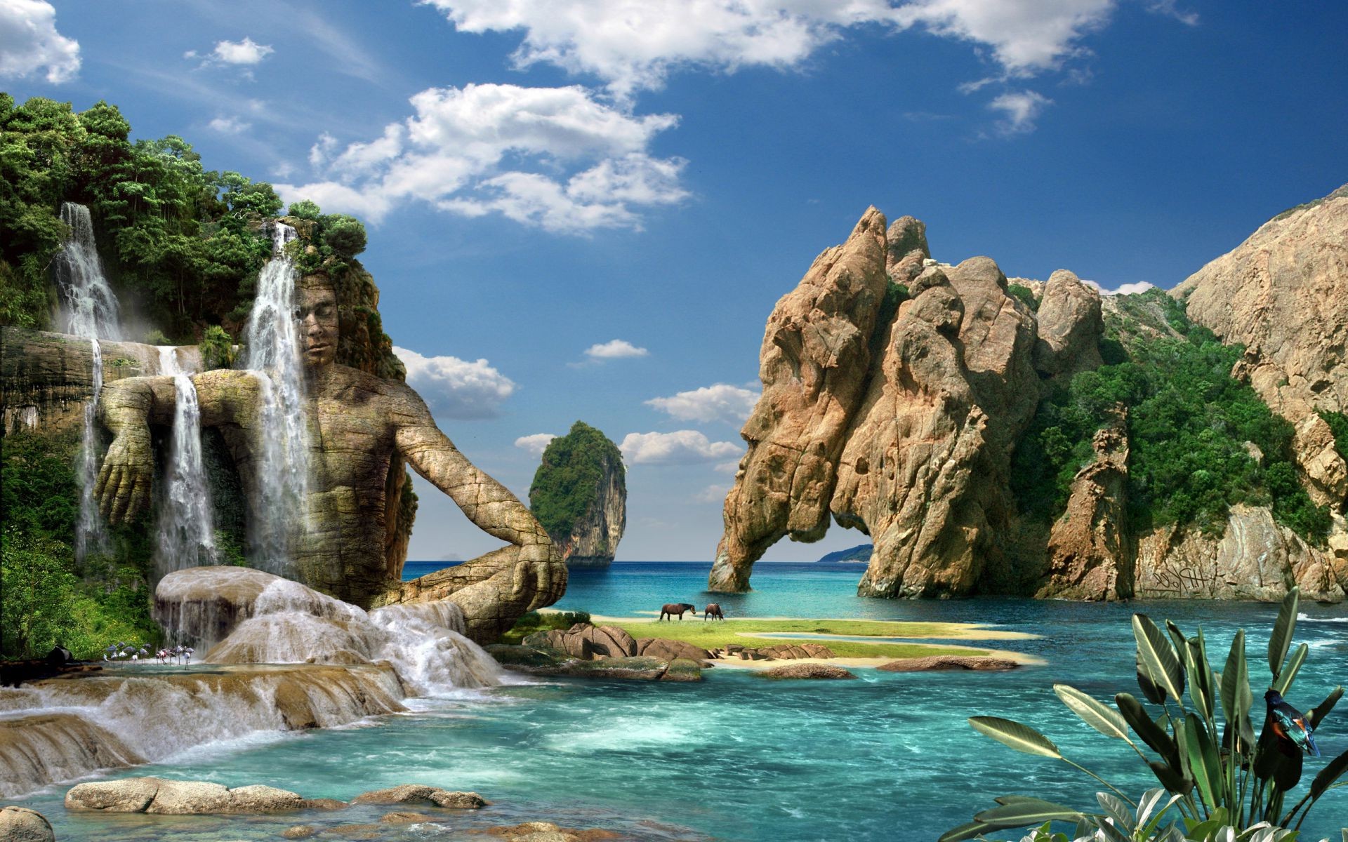 Bella cascata nella laguna blu