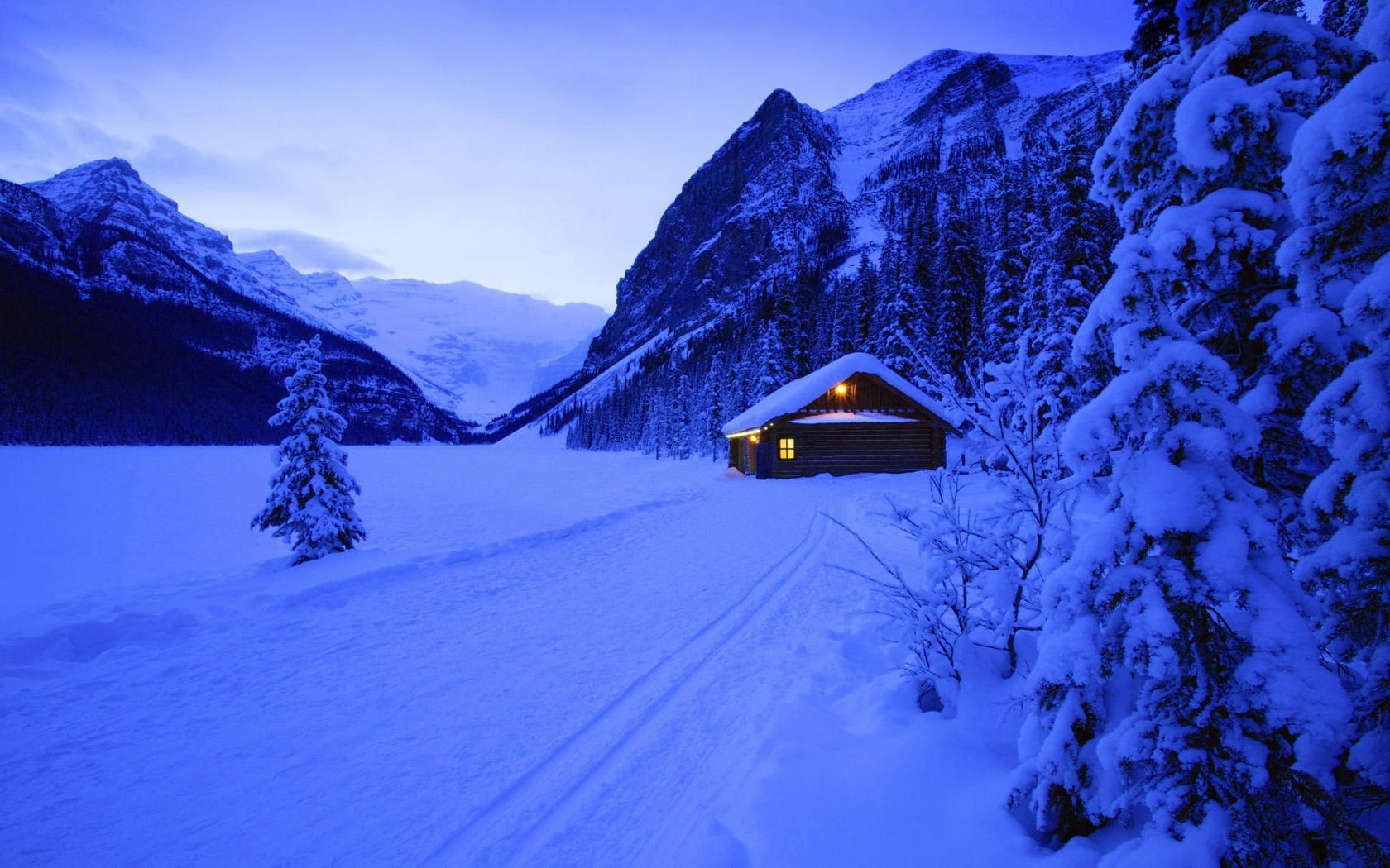 Paesaggio serale: montagne illuminate dal luminare notturno e un lagoPaesaggio serale: montagne illuminate dal luminare notturno e un lago