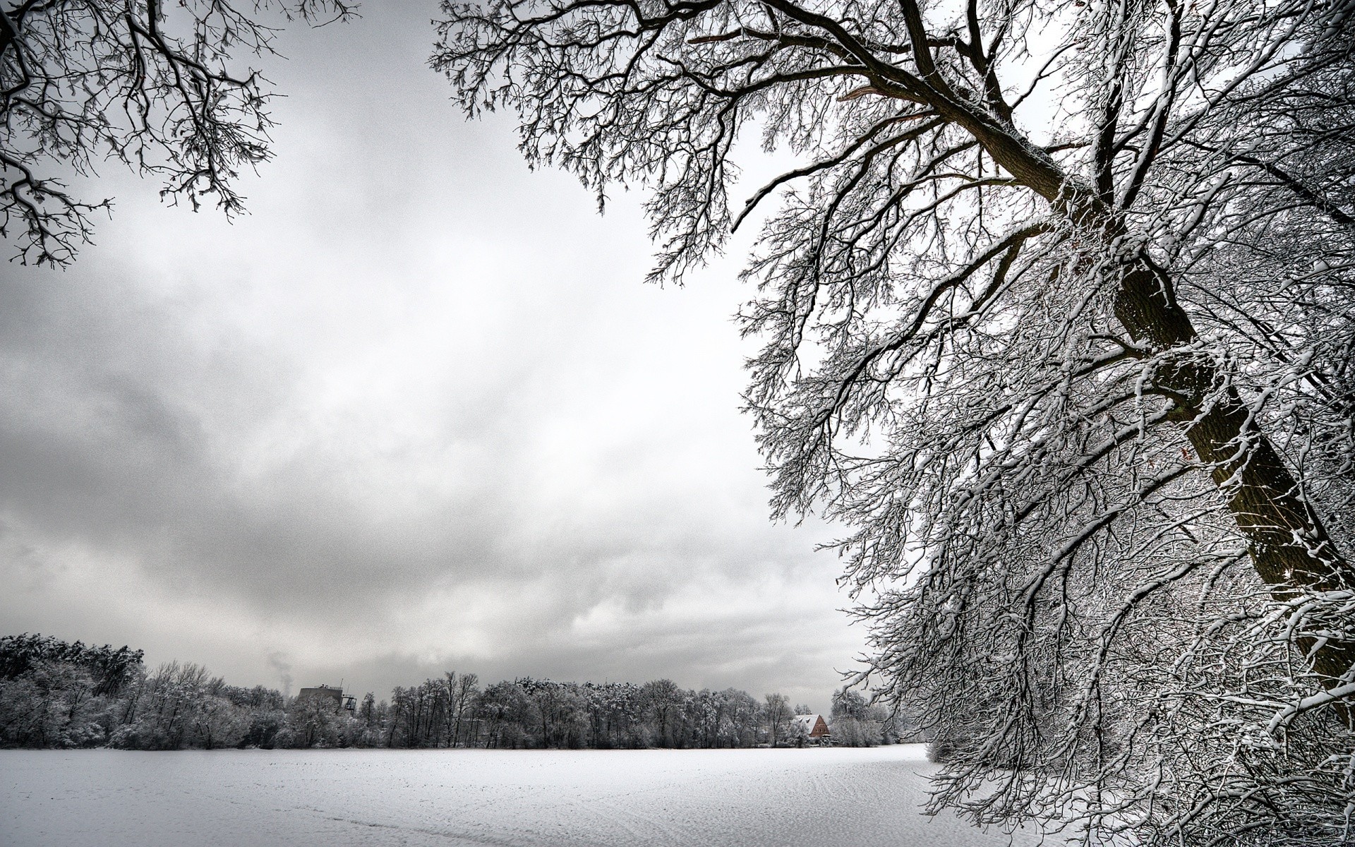 Albero solitario nel campo invernale