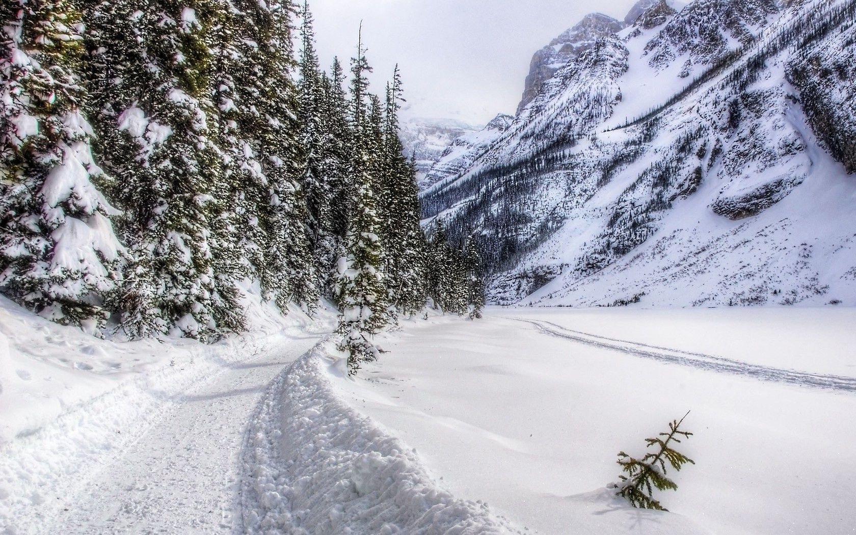 Paesaggio invernale di foreste e montagne