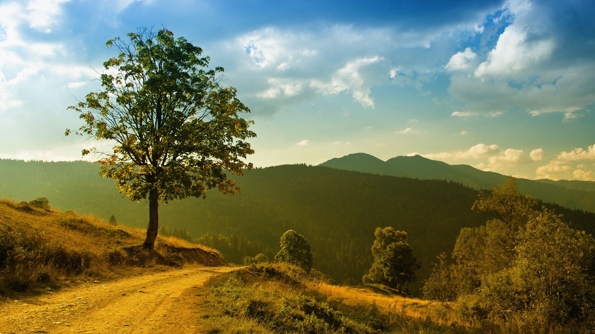 Un paesaggio invitante con un albero in toni calmi