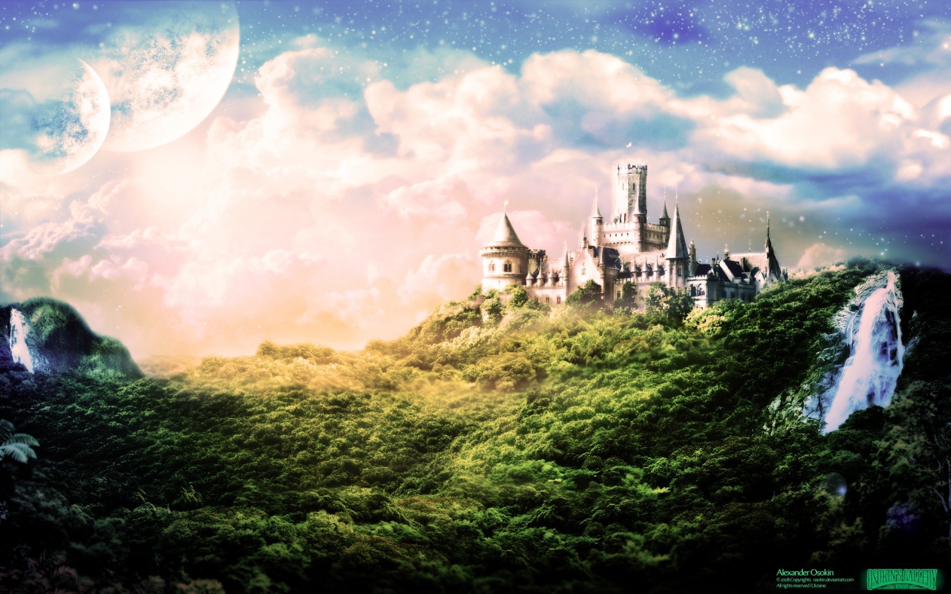 Castello di paesaggio nel cielo di fantasia
