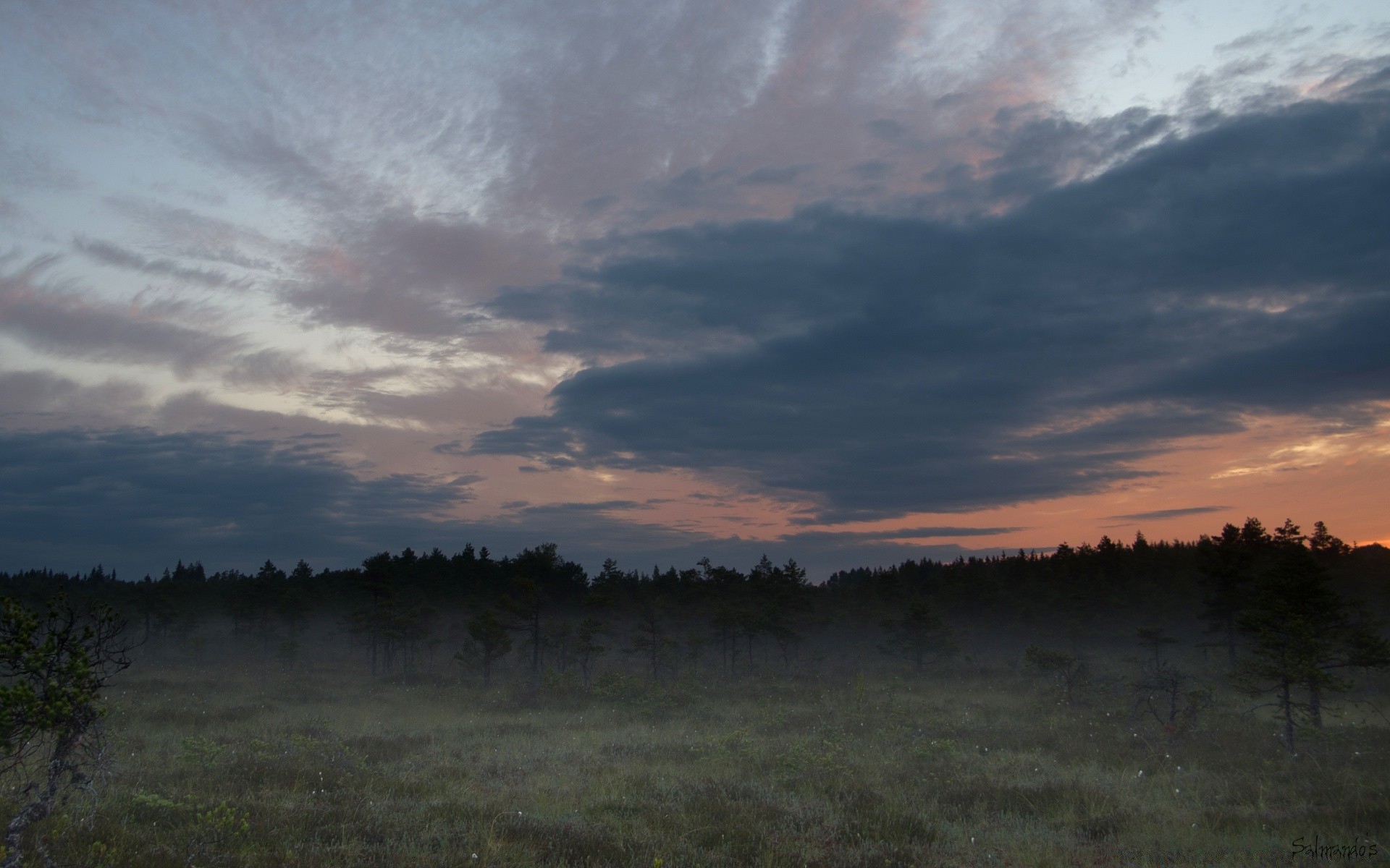 Paesaggio del tramonto serale sullo sfondo della foresta