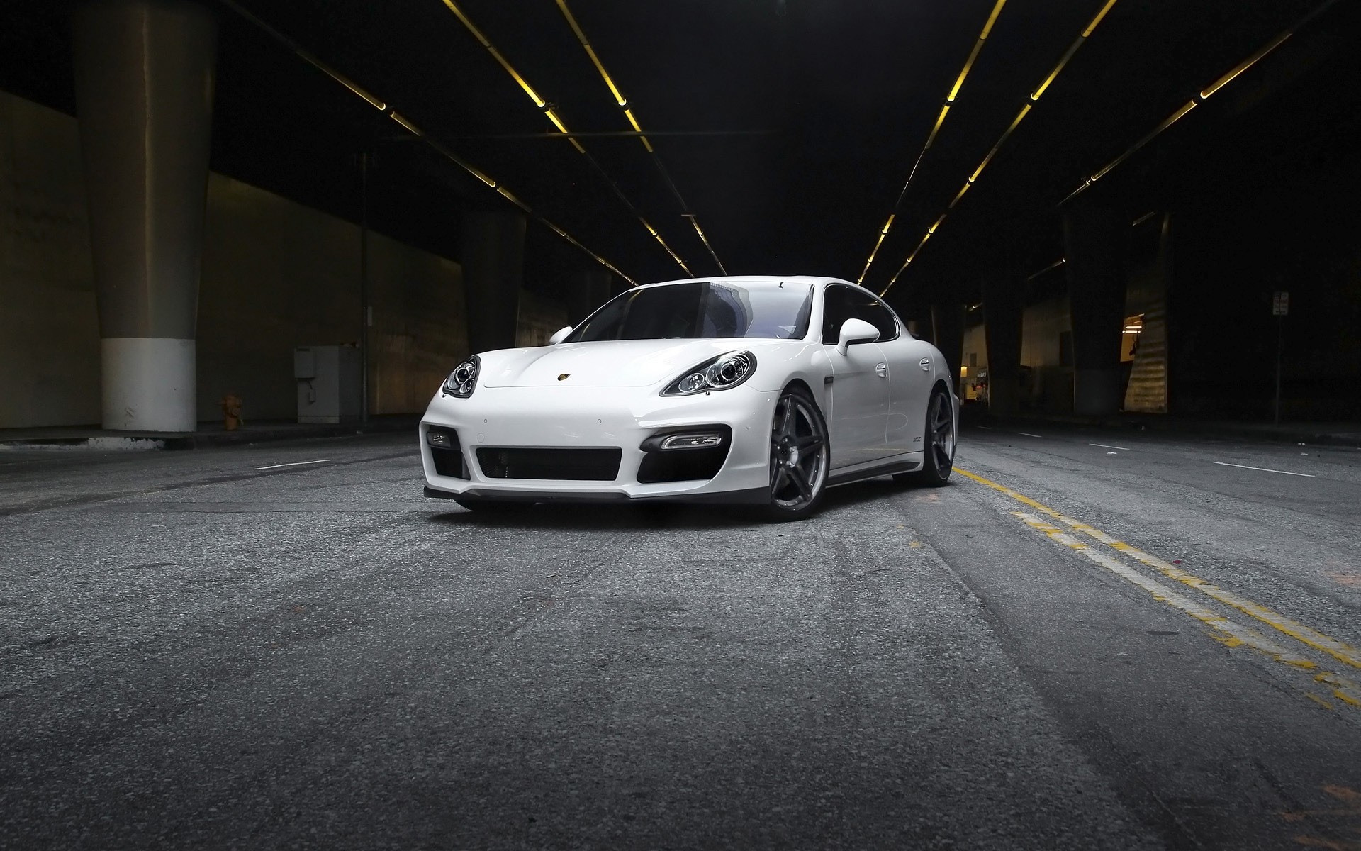 Un'auto sportiva bianca su un'inversione a U solleva la polvere