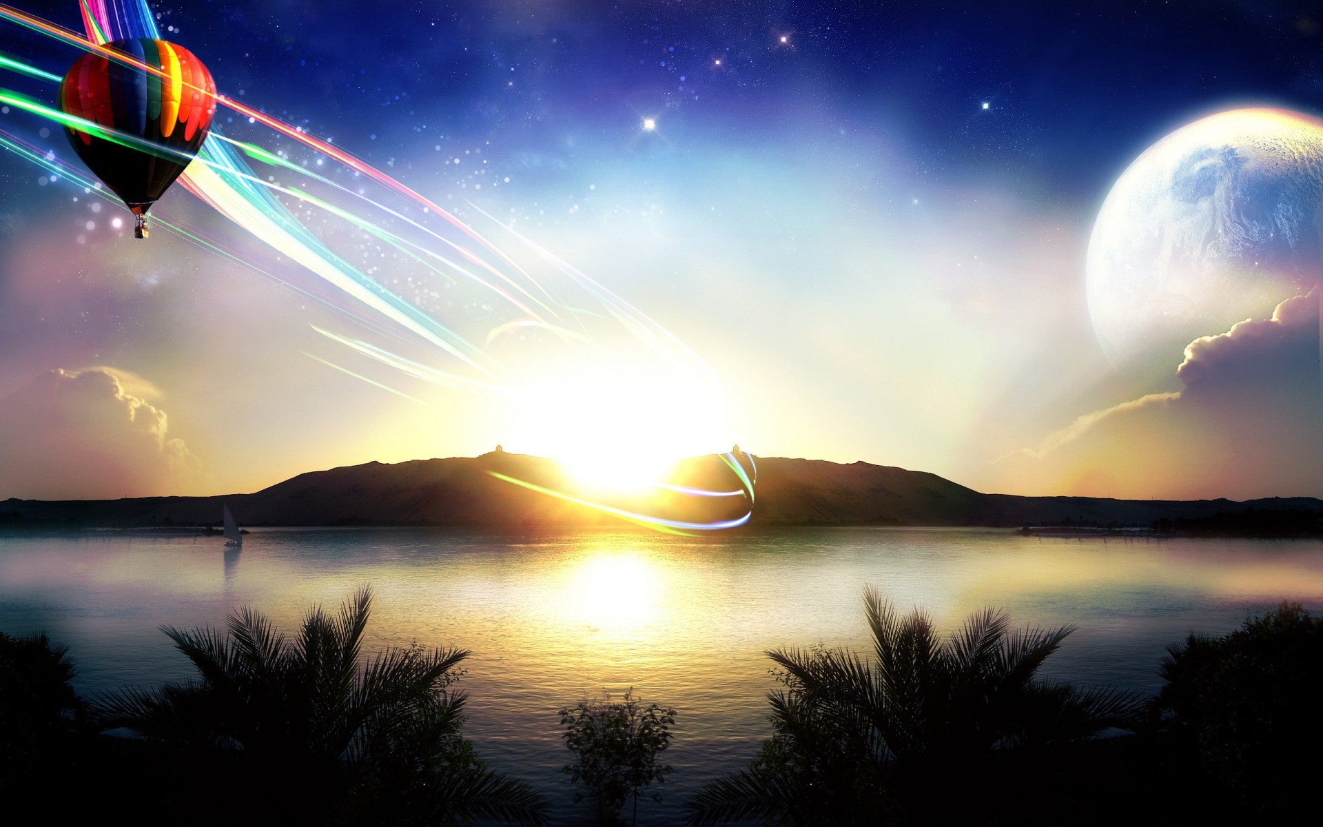 Palle con cielo blu della sera