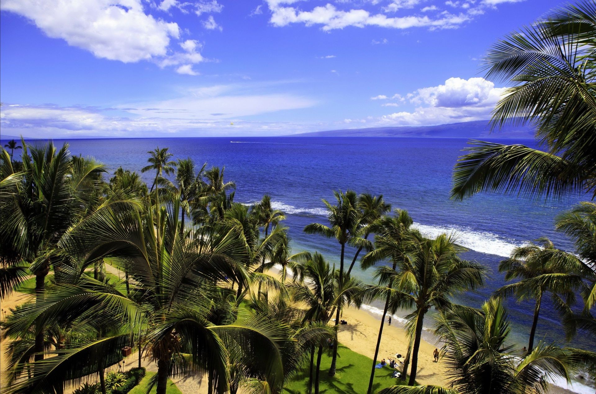 Natura sulla spiaggia sotto le palme vicino all'oceano