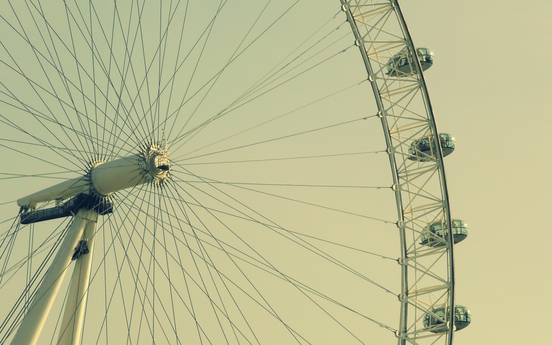 Riflessi della ruota panoramica nella superficie del fiume megalopoli