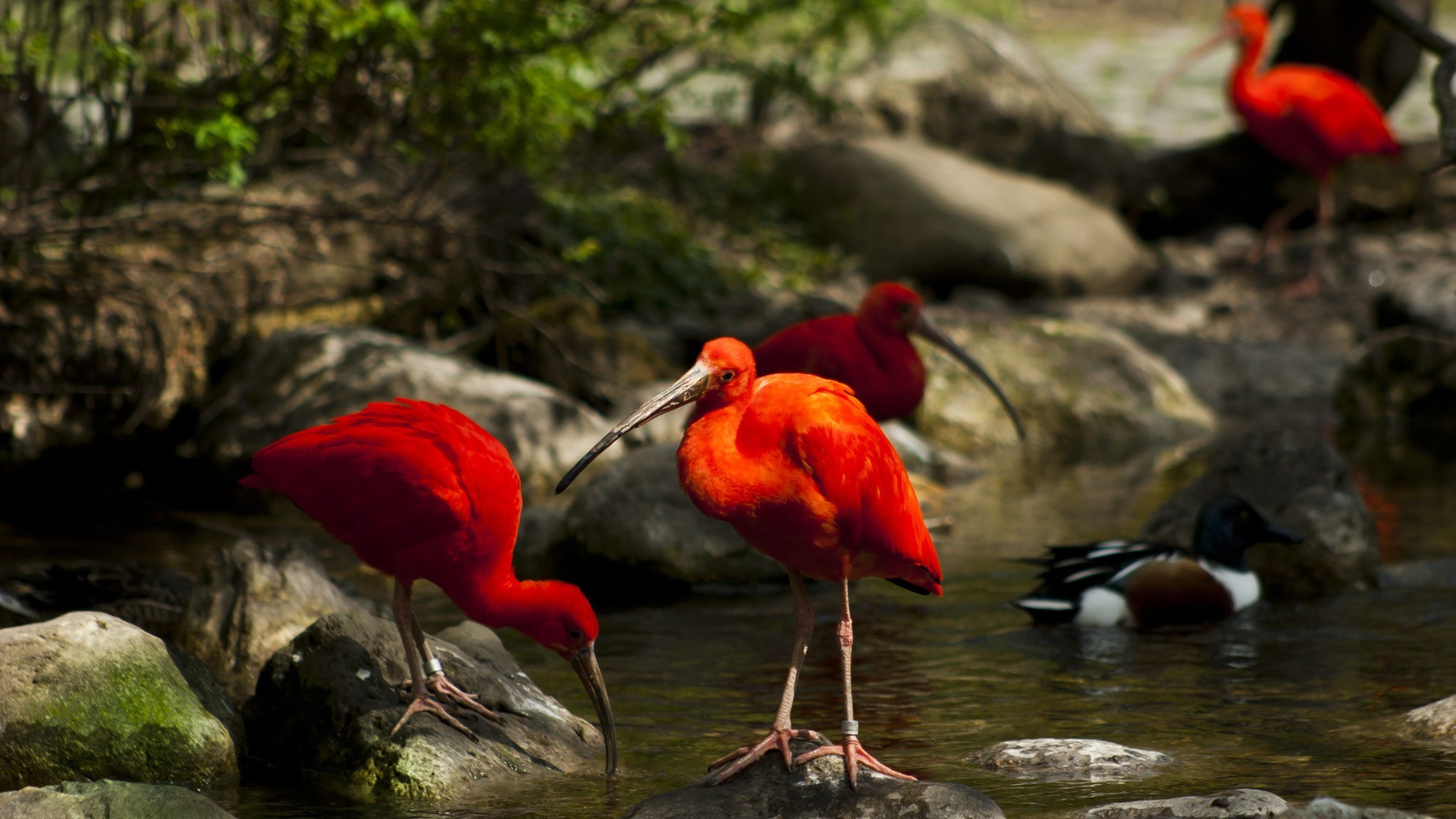 Uccelli selvatici rossi che bevono acqua