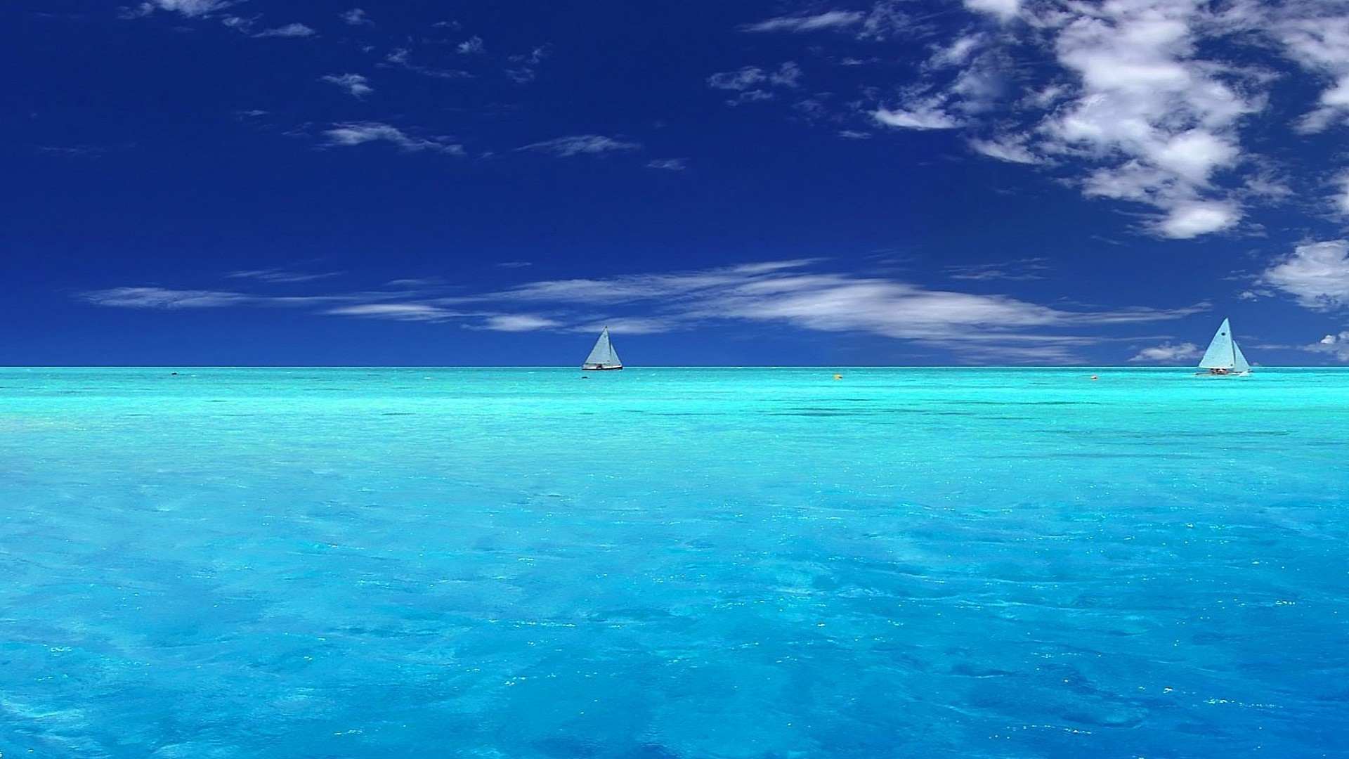 Collage di foto. Yacht con vele bianche. Sabbia bianca. Cielo blu con nuvole bianche. Stelle marine colorate