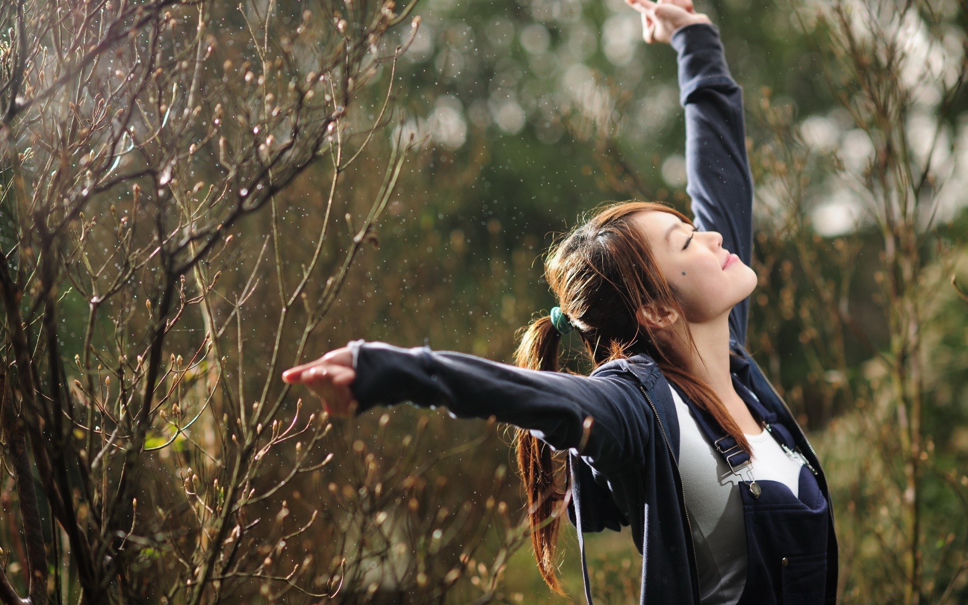Immagine di una ragazza sullo sfondo di un parco serale
