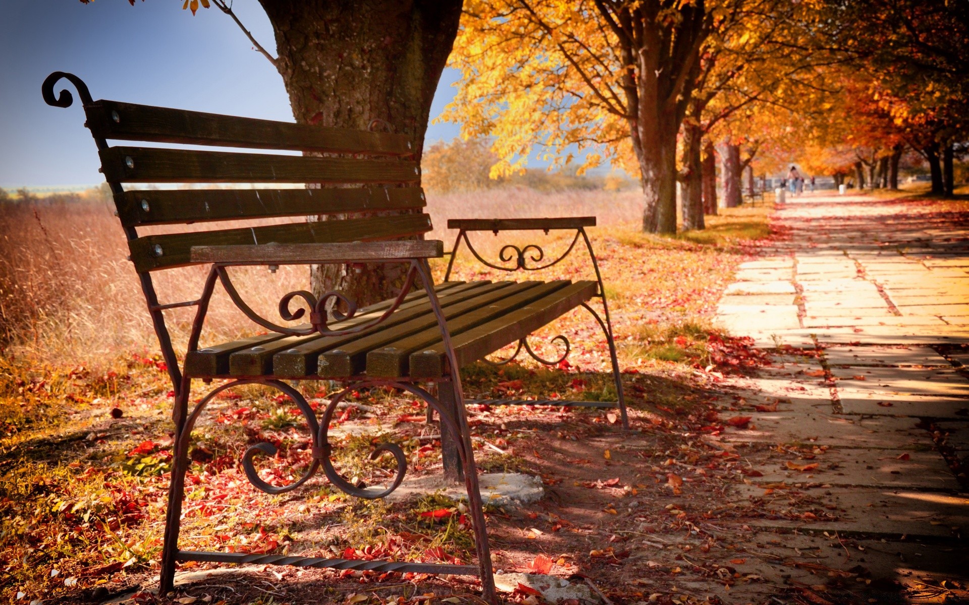 Parco in autunno. Le foglie gialle coprivano tutta la terra